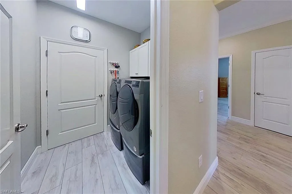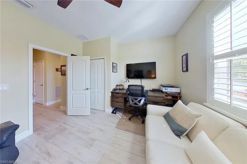 Listed below appraised value. You are welcomed when entering the home with expansive lake views, following an open floor concept. Beautiful finishes in your gourmet kitchen, featuring Whirlpool stainless steel appliances, granite counters and mosaic tile backsplash, under & above cabinet lighting, charcoal granite sink, soft-close cabinetry, pull-outs, custom crown molding & mop boards, Built-in glass-front cabinet, added pantry shelving and more. Desirable Trevi floor plan with 3 bedrooms plus den, 3 full baths, pool and 2 car garage. Additional upgrades include a whole-house Generac generator with buried 500 gallon propane tank, new AC system (Feb 2025) with hospital-grade HEPA filtration, and Storm Smart hurricane-rated windows, Interior highlights: – Luxury vinyl tile flooring throughout for easy maintenance, washer & dryer (2024) – Closet systems in both master walk-ins, Culligan water system, all new lighting/fans throughout, Motion lighting in utility & garage, Samsung garage refrigerator, Tool chests, cabinets & epoxy treated garage floor – Garage ceiling fishing pole organizer – Laser parking lights Outdoor upgrades: – New pool cage (2024) with no-see-um screen – Heated pool with child safety fence – Solar lighting around pool area – Driveway & pool pavers treated every 6 months – Tropical landscaping including Blue Tulip Agave & Royal Pygmy Palms – Screened front entry Bonus: Quartz countertops in all baths, plantation shutters, and original tile preserved under LVT. Relax in your spacious En-suite bathroom with soaking tub and walk-in shower, double vanity and large main bedroom closet with custom cabinets. Enjoy the outdoor space and expansive lake views with a large covered lanai and screened in pool area. Pelican Preserve a premier, active 55+ Resort Style community. Amenities include card rooms, you can enjoy bridge, mahjong, poker and more, Explore sewing, wood-working, art lessons, billiards, and computers, or relax and enjoy popcorn while watching movies in the theatre.There are plenty of exercise classes offered at the fitness center, including Yoga, Spin, Pilates, and Zumba. Indoor and outdoor pools. In addition also there are an indoor track, locker rooms, sauna and steam rooms, and spa treatment rooms. 8 Tennis courts and 12 Pickleball courts. Pelican Preserve has a 27 hole Private Golf Club with optional memberships. Other amenities include: Theatre, Dog Parks, Fishing Pier, Amphitheater Cafe, Library and restaurants with bar and a vibrant social calendar. Pelican Preserve is a short drive to RSW Airport and many shops and restaurants and the gulf coast beaches, making this the perfect home and location to begin life’s next adventures!