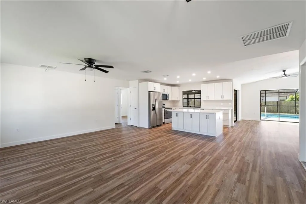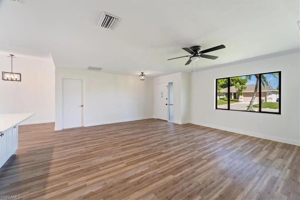Welcome to your newly renovated 3-bedroom, 2-bathroom home in the heart of San Carlos Park, where fresh updates meet Florida living at its finest. This completely transformed 1,589 square foot home greets you with an open floor plan that flows seamlessly from room to room, showcasing beautiful new luxury vinyl plank flooring throughout and a stunning kitchen that would make any home chef smile. The kitchen steals the show with crisp white shaker cabinets, gleaming quartz countertops, and a nice sized island perfect for morning coffee or evening entertaining. Brand-new stainless steel appliances complete this culinary haven, while ample storage ensures everything has its place. Step outside to discover your private oasis featuring a screened pool enclosure and covered lanai area, ideal for year-round relaxation and entertaining. The fully fenced backyard provides privacy and security, while the screened patio offers additional outdoor living space. The primary bedroom serves as a peaceful retreat with vaulted ceilings and direct access to the lanai. The primary bathroom features a spacious walk-in tiled shower and plenty of storage for your essentials. Additional highlights include fully paid off solar panels, fresh paint throughout, updated bathroom vanities with quartz tops, a two-car attached garage, and a generously sized driveway. Located in San Carlos Park with no restrictions or fees, you’ll enjoy proximity to San Carlos Golf Club, Three Oaks Park, and Gulf Coast Town Center shopping. Southwest Florida International Airport is conveniently accessible for travel needs. With its renovations, prime location, and outstanding amenities including the private screened pool, this move-in ready home represents the perfect opportunity to experience the best of Southwest Florida living!