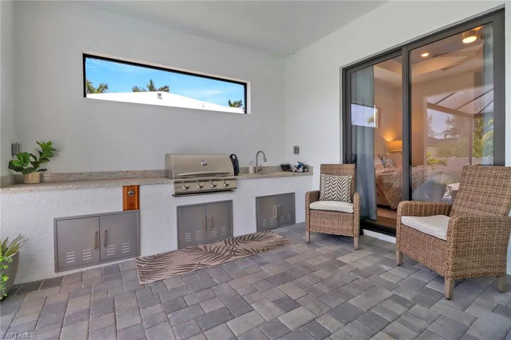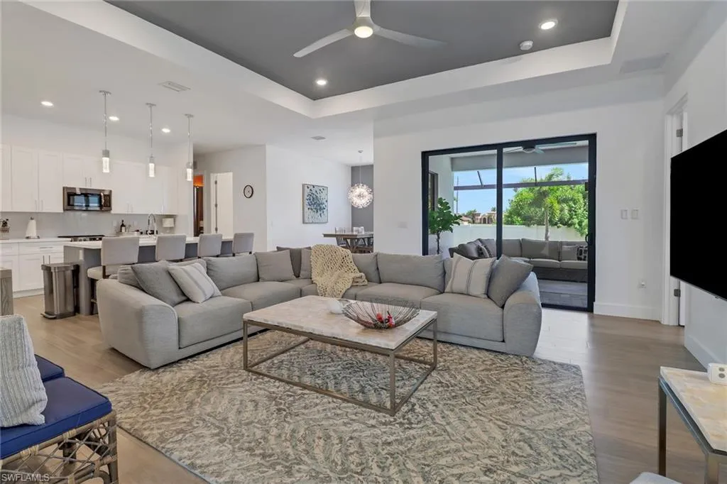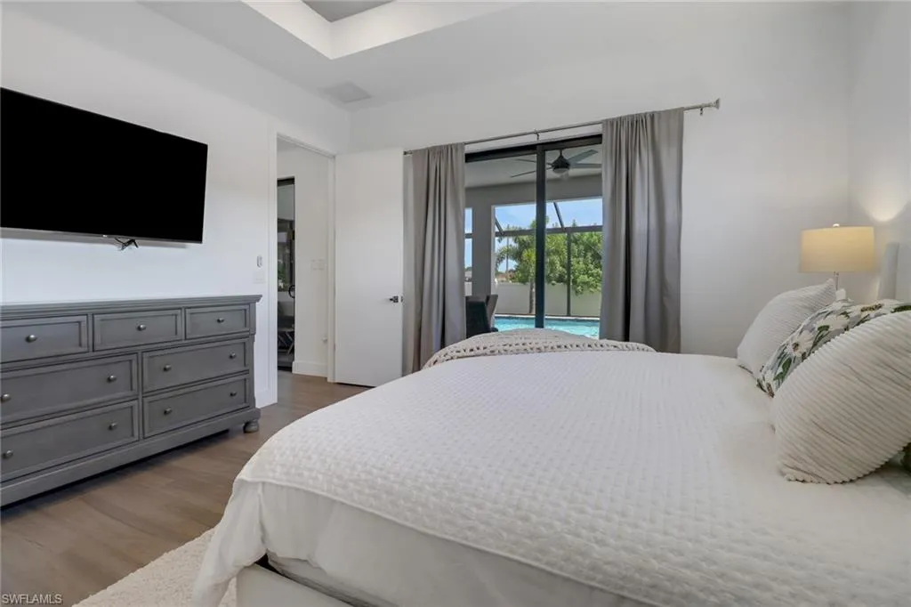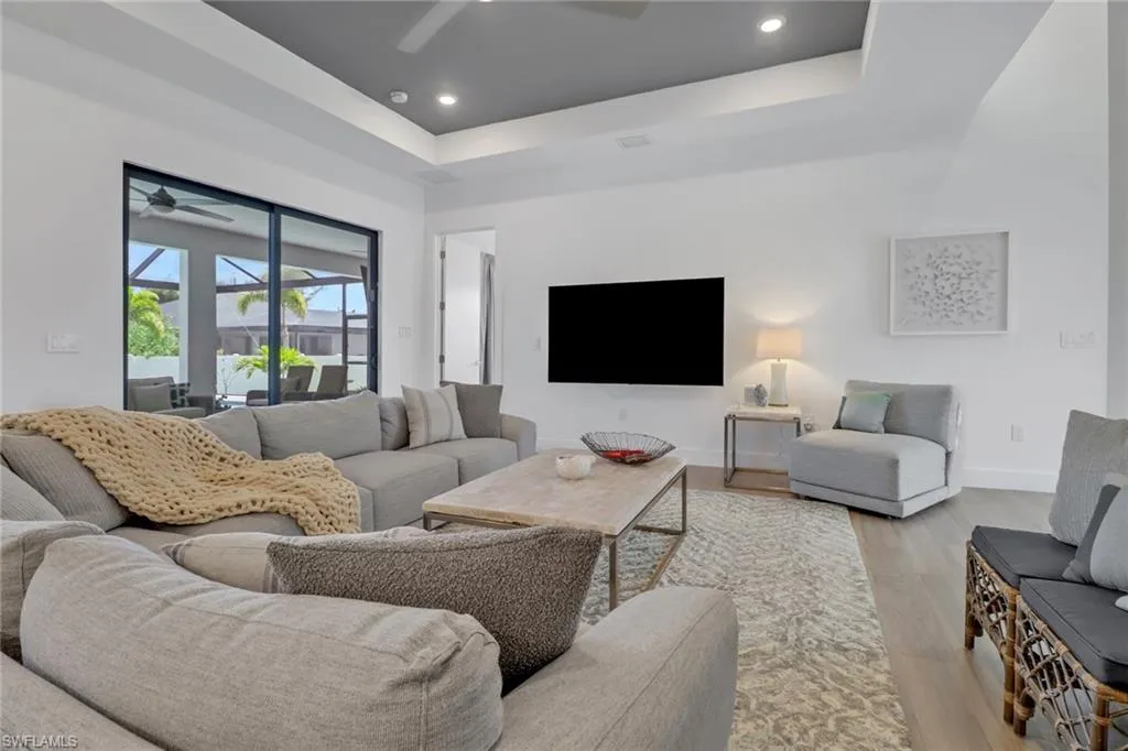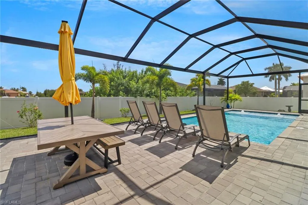 Discover this beautifully crafted, fully wheelchair accessible home in one of Cape Coral’s most desirable neighborhoods near the Spreader Canal. Designed for comfort and style, it offers open concept living with quartz countertops, tray ceilings, and hurricane impact protection throughout. The split floor plan features 4 bedrooms, spa inspired baths, and a luxurious master suite with pool access and dual walk in closets. Outside, enjoy a private lanai with heated saltwater pool, sun shelf, fountain, outdoor kitchen, and shower all with southern exposure. With porcelain tile, custom closets, epoxy garage, whole home reverse osmosis, this home is truly move in ready.