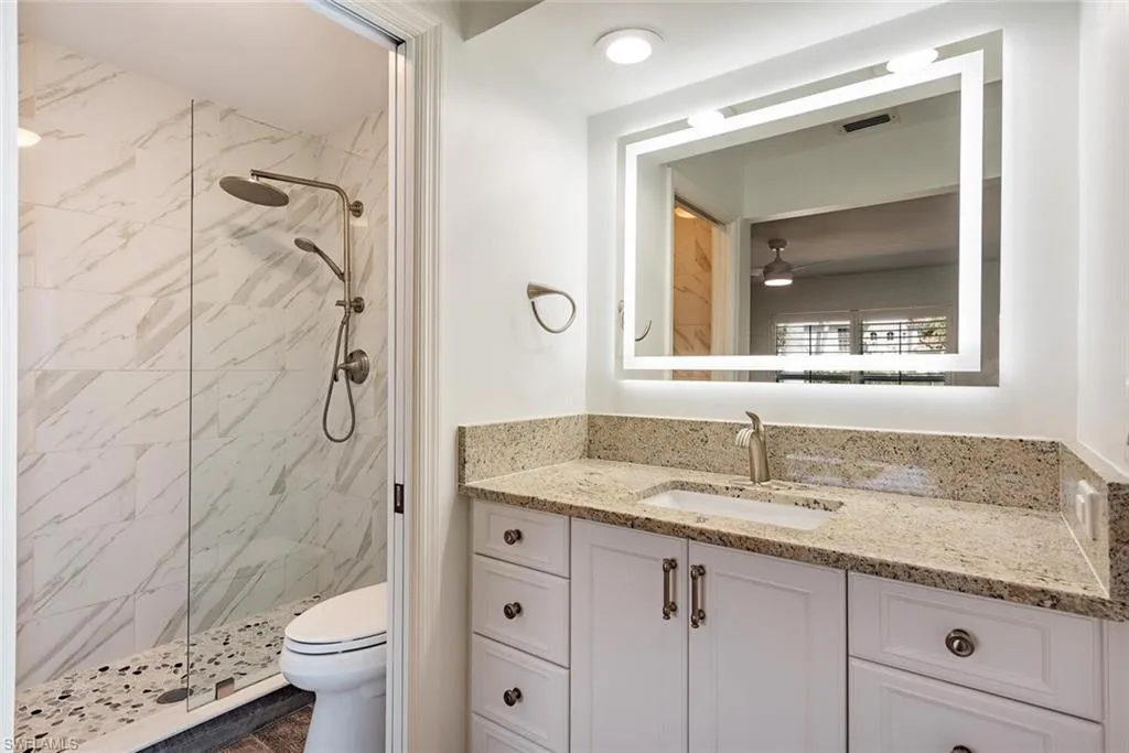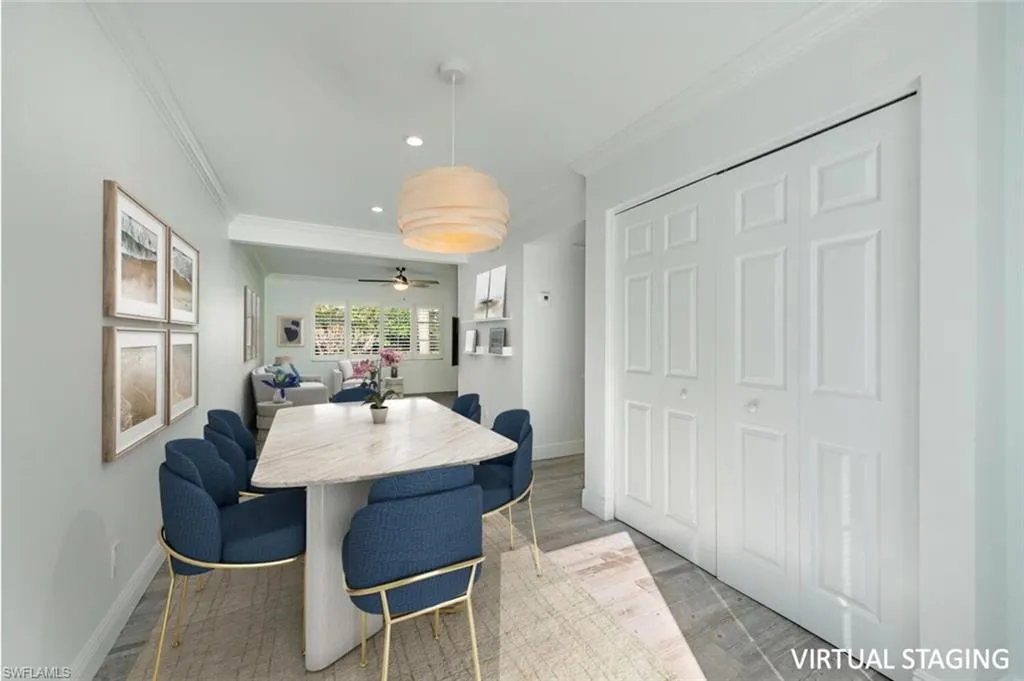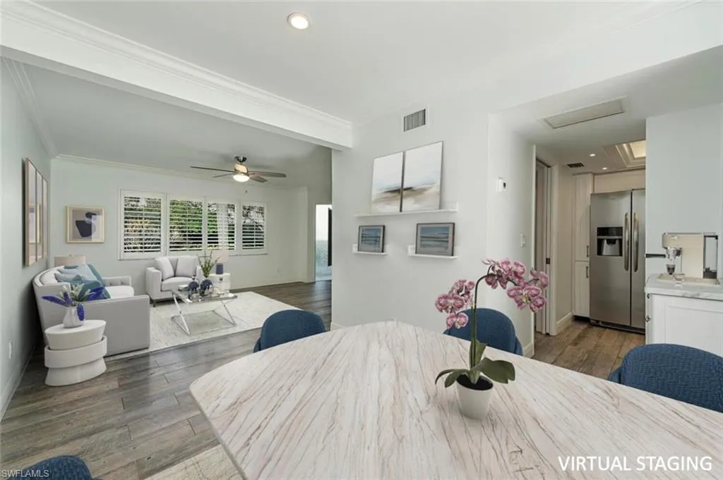 Discover this charming single-family attached villa in Old Naples, complete with a private one-car garage. Nestled in a serene, tree-lined neighborhood, it’s just 3.5 blocks from the area’s iconic white-sand beaches and 3 blocks from the vibrant shopping and dining on 5th Avenue South. Spanning 1,302 square feet across two levels, this light-filled home includes 2 bedrooms, 2.5 bathrooms, a 220-square-foot private backyard patio, and a 195-square-foot private garage. Inside, you’ll find wood-look tile flooring throughout, elegant crown molding, and a crisp white kitchen featuring a farmhouse sink, marble countertops, a glass tile backsplash, and stainless-steel appliances. Recent updates enhance its appeal: a new HVAC system, fresh patio pavers, epoxy flooring in the garage, illuminated bathroom mirrors, a new skylight, updated disposal, washer/dryer, ceiling fans, and a recent interior and garage paint job. The backyard Jacuzzi is negotiable. Located at 185 4th Street South—one of just three units in the HOA—this villa sits on high ground in the X-500 zone near the corner of 4th Street South and 2nd Avenue South. Notably, 2nd Avenue South doesn’t connect to US-41, ensuring minimal traffic and a tranquil setting. Seize the chance to embrace authentic Old Naples living.