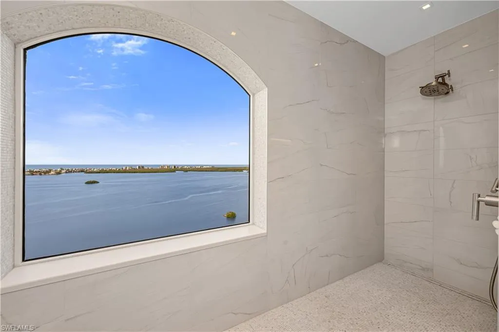 An extraordinary, rarely available total remodel—masterfully crafted by a premier Nantucket builder—this residence embodies sophistication and refinement at every turn. Sleek 42″ porcelain tile flooring sets the tone, complemented by an abundance of recessed lighting and linear air diffusers that create a modern, gallery-like ambiance. The chef’s kitchen is a showpiece, featuring wonderful quartz countertops, a Sub-Zero refrigerator tower, a Subzero freezer tower, Subzero wine tower. 2 dishwashers. Wolf ovens and cooktops, and designer fixtures that exude elegance. Spa-inspired baths showcase extraordinary finishes, with a dramatic Gulf-view walk-in shower, a freestanding soaking tub, and bespoke custom closets that marry beauty with function.