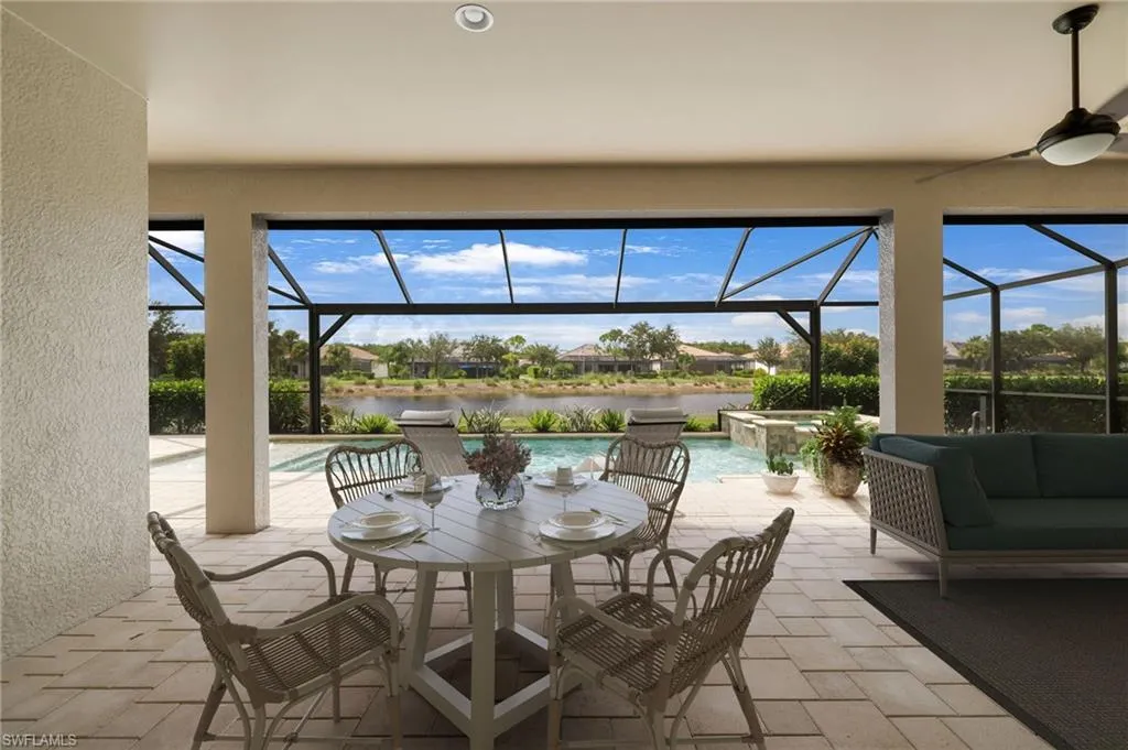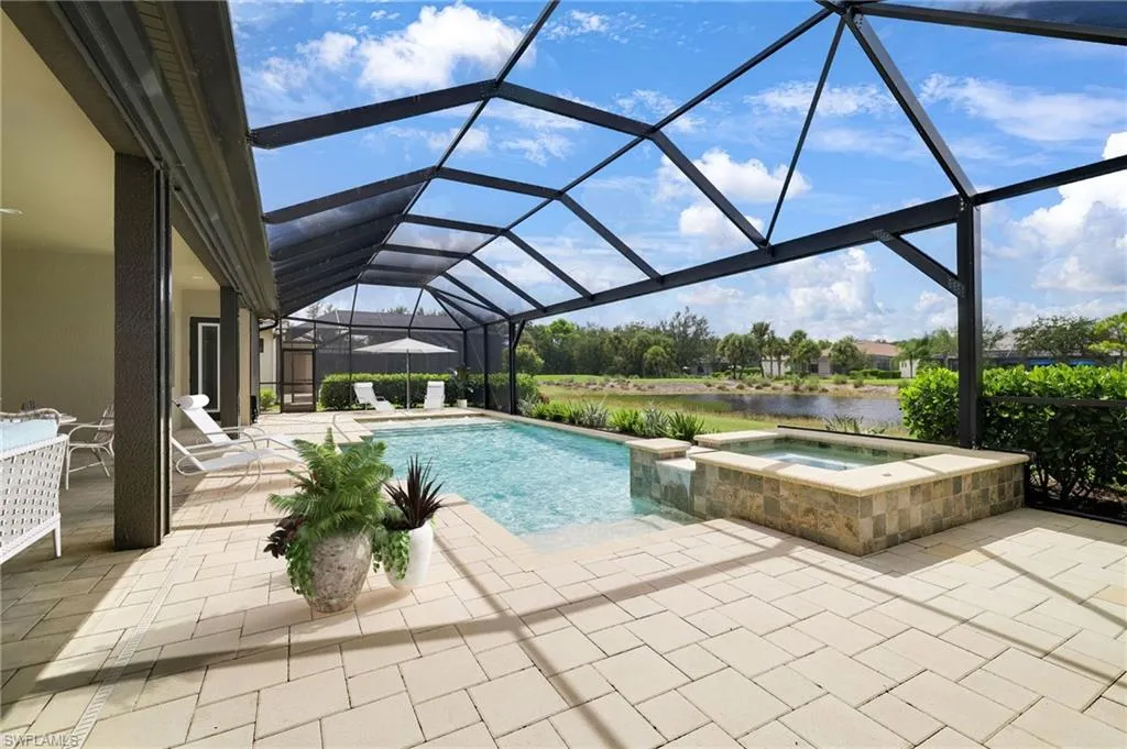 Welcome to Plantation at Somerset in South Fort Myers, where this stunning Jamison II model showcases sweeping west-facing lake and golf course views that set the stage for unforgettable sunsets. With 3,110 sq. ft. under air, this open floor plan includes four bedrooms plus a den and three full bathrooms, perfectly designed for both comfort and style. Highlights include a custom pool with spa, impact-resistant windows and doors, energy-efficient upgrades, an oversized two-plus car garage, upgraded kitchen cabinetry, and elegant crown molding throughout. The primary suite is a true retreat with private lanai access, custom walk-in closets, and a spa-inspired en-suite featuring a soaking tub, walk-in shower, and dual vanities. Recent updates add even more value, including a whole-house water filtration system, newer Bosch appliances, a SpeedQueen washer and dryer, updated pool equipment, a newer A/C unit, and an air exchanger. Plantation at Somerset residents enjoy resort-style living with two on-site restaurants, a community center, multiple pools, tennis, pickleball, and the option to join the award-winning Hurdzan-Fry golf course. All of this is just 10 minutes from RSW Airport, close to shopping, dining, and spring training stadiums, and only 30 minutes to Gulf beaches. Don’t miss this exceptional opportunity to pair a luxury lifestyle with rare golf membership access—schedule your private showing today!