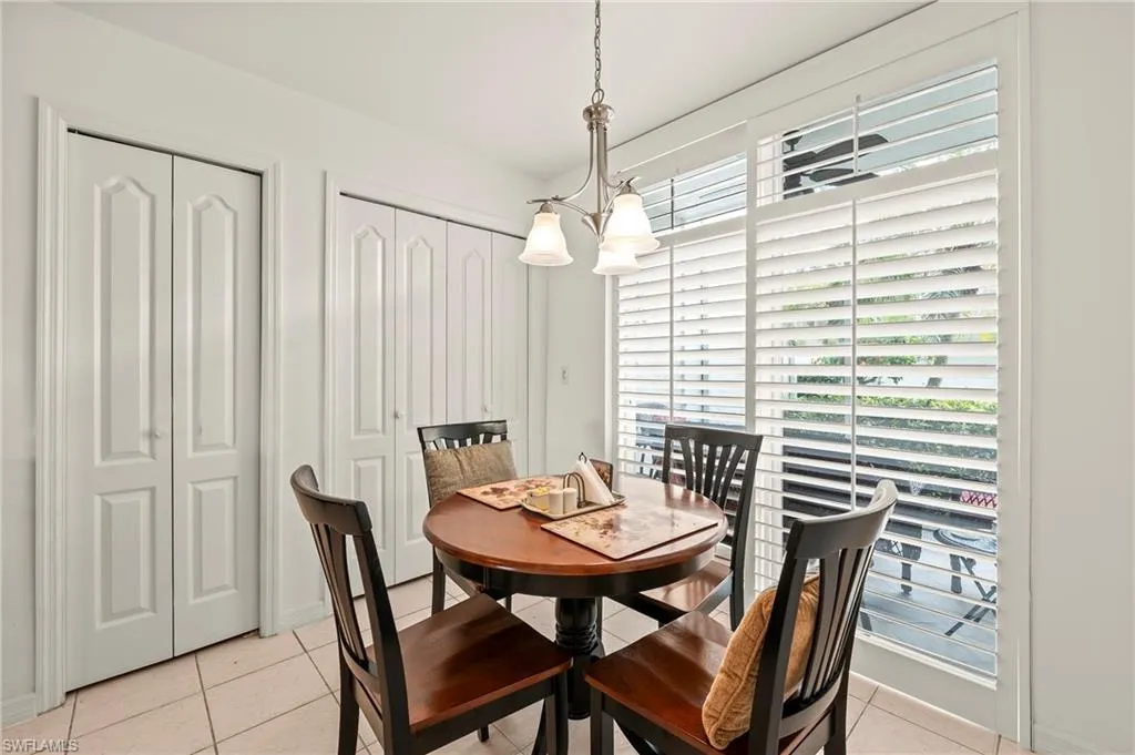 Discover your perfect winter retreat in this exquisite turnkey two-bedroom, two-bath Carlton Veranda, located in the prestigious gated community of Highland Woods. Known for its bundled golf amenities, this impeccably maintained home boasts a desirable split bedroom design and stylish modern updates. The kitchen and bathrooms are adorned with raised panel cabinetry and luxurious Silestone and granite countertops, infusing everyday life with elegance. Natural light bathes the spacious living and dining areas, creating an inviting atmosphere for gatherings. The master bedroom serves as a serene escape, featuring a bay window with breathtaking views & two walk-in closets. Throughout the main living spaces, you’ll find tile flooring enhanced by plantation shutters, Hunter Douglas motorized shades, crown moldings, & custom recessed bar. Separate laundry room, storage closet, a one car detached garage with pull downs stairs adds to the everyday comforts of this property. Relax on the rear lanai, where you can take in stunning golf course, lake and sunset views. Situated in the heart of Bonita Springs, this lively community offers the convenience of nearby shopping, dining, and entertainment, with the pristine Gulf of Mexico just 4 miles away. Highland Woods provides a wealth of amenities, including an 18-hole golf course, bocce and tennis courts, multiple community pools, and a cutting-edge fitness center. The newly completed resort-style pool and spa, along with a cabana bar, restaurant, and pickleball courts, further elevate the community’s charm. Seize this remarkable opportunity! Envision spending your days on the golf course and your evenings watching the sunset—the ideal setting for a tranquil winter getaway.