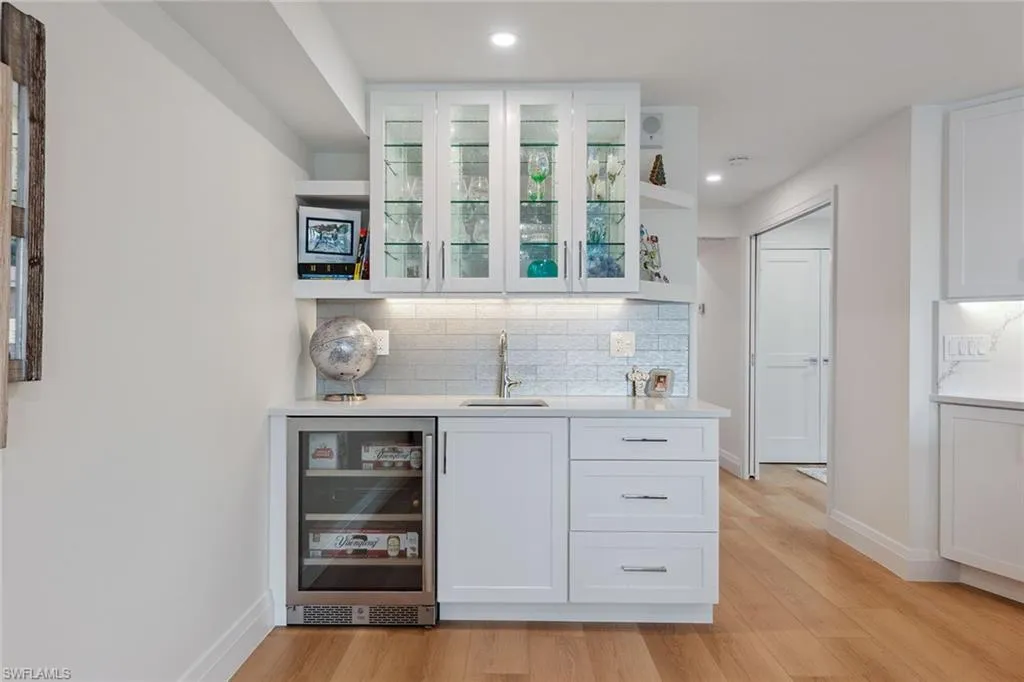 This updated third-floor, three-bedroom home offers stunning views of Moorings Bay. Conveniently located across from beach access, you can spend your days basking in the sunshine and end the day watching the colorful sunset. This newly remodeled unit features luxury vinyl plank flooring throughout, a smart home control panel, in-unit laundry, a west-facing open-aired private balcony off the primary bedroom with Gulf views and much more. Enjoy this bay-front residence featuring a wall of impact glass sliders designed to maximize the view. The kitchen is equipped with Lincoln quartz countertops and backsplash, a large island with bar seating that is perfect for entertaining guests, Bosch appliances and a wet bar complete with a wine cooler. Harbour Cove residents enjoy a peaceful bay-front pool, grills, and onsite boat slips that can be leased through the association. Owners can lease their units three times a year with a 60-day minimum. Located on Gulf Shore Boulevard, just north of Harbour Drive, it’s a quick bike ride to the private Moorings Beach Park or the renowned shopping and dining at Venetian Village.