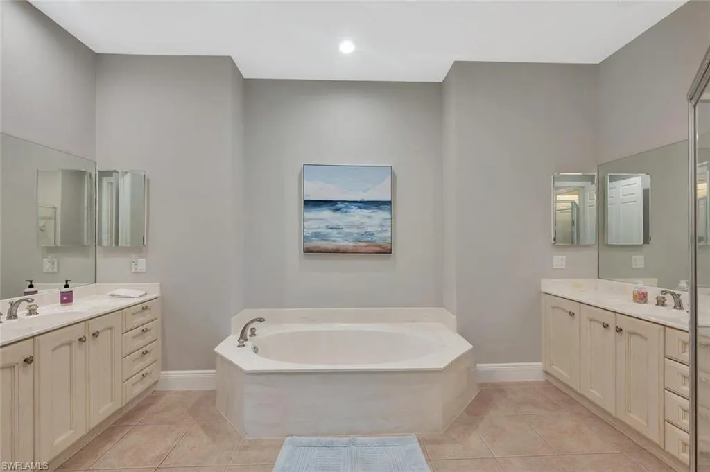 The owner’s suite is a private haven with two walk-in closets, dual vanities, a soaking tub, and a walk-in shower. Two separate guest suites, each with its own full bath, are perfectly placed for privacy—one even has a private balcony so friends and family can fully enjoy their Florida visit.
