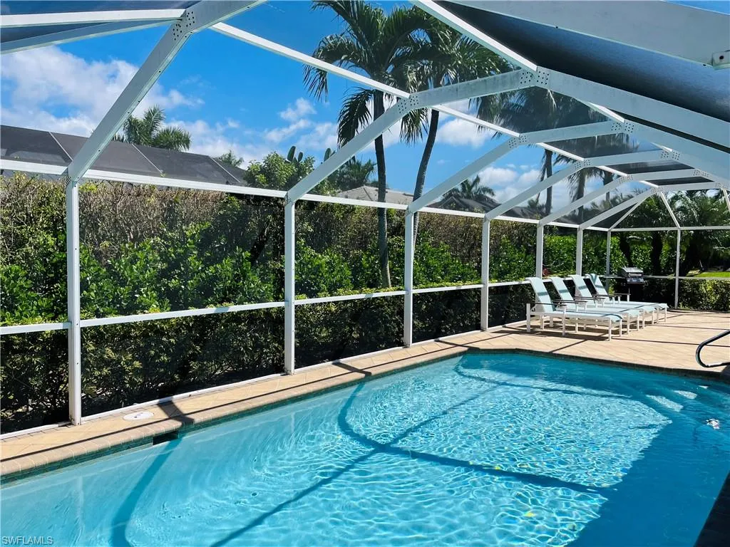 This meticulously well maintained 3 bedroom plus den, 3 FULL bathroom, eastern exposure pool home is being offered fully furnished/turnkey with quality furnishings. All ready for you to move in! Located in a quiet neighborhood centrally located on Marco Island just 1 mile from Resident’s Beach & it’s white sugar sand, shopping, dining, schools, Mackle Park, YMCA, library & the museum! Lot’s of space in the 2,027 sq. ft. home. The Primary Bedroom has it’s own wing with lighted tray ceilings, hardwood floors & en-suite bath with lg. walk-in shower & dual sink vanity. And lg. walk-in closet! There are also sliding doors for easy access to the lanai! The guest wing has 2 bedrooms with lg. closets plus their own full bathroom w/ Jacuzzi tub/shower combination. The Den has a new Queen sleeper sofa, adjoining FULL bathroom with easy access to the over-sized screened lanai. Extra tall sliding doors make this room bright & airy. The over-sized screened-in lanai & newly resurfaced heated pool with waterfall are perfect for relaxing or entertaining, complete with Windward Design Group Marine Grade Polymer low maintenance patio furniture which includes, 4 loungers, dining set w/ 6 swivel chairs, 4 sling chairs and fire table. New propane grill & an outdoor shower. The beautifully updated kitchen with granite counter tops is well equipped with stainless stainless steel Bosh & GE Profile appliances. There is an eat-in kitchenette for more casual dining with sliding do or access to the lanai, plus lots of counterspace including a high bar top with 6 bar stools. The Great Room provides an entertainment area with 75 in Smart TV & dining area with seating for six. There are extra tall tri-folding glass doors that let in lots of natural light with access to the lanai. The spacious laundry room has Whirlpool HE washer/dryer. There is a two car garage with automatic door opener & built in work bench. The property is beautifully landscaped with mature Pygmy & Christmas Palms, beautiful Bougainvillea & Calusa hedge for lots of privacy, all well maintained with sprinkler system. feel safe knowing this home is situated at a higher elevation & comes with manual, accordion & electric hurricane shutters. Wind Mitigation & insurance inspections up to date. This home is covered by a Home Warranty so everything is well maintained. New full house A/C Oct 2025, Newly Resurfaced Pool Oct. 2025, Hot Water Heater 2024, Electric Pool Heater 2023. A 1 YEAR HOME WARRANTY WILL BE PURCHASED FOR THE BUYERS!!
