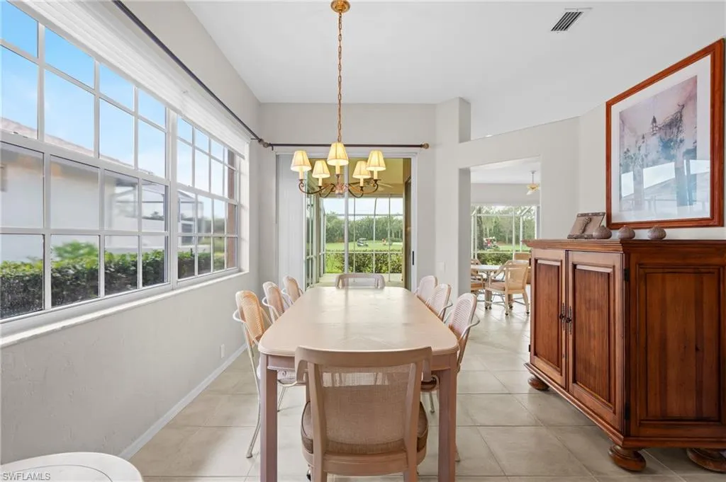 This Villas II offering in Worthington Country Club is full of natural light, has an inviting neutral decor, and is move-in ready with Tuscan furnishings for the next owner! Come see what this quiet, attractive community has to offer. Community amenities such as a private club with poolside food and beverage, the main clubhouse with excellent dining and many activities such a bocce ball and card games. Members voted to approve to remodel indoor/outdoor cabana bar and add 4 pickleball courts and 5 tennis courts. The work is scheduled to begin Spring 2026 with no without a special assessment to owners! Known as a golf and tennis community, find comfort in this detached villa with an expansive view overlooking the 8th fairway. The southern rear exposure and floor plan allow clear and sunny views from many rooms. The open white kitchen with recessed lighting flows into the living area and wraparound lanai. The extended garage with built-in cabinetry is another subtle attribute to make this property desirable. The new owner will receive a Boral Steel Limited Fully Transferrable Warranty provided via its 2019 installation (please find it uploaded as a supplemental document). Worthington is conveniently located a short walk away from the Publix-anchored Trade Way shopping complex. Across the street, Midtown at Bonita is under construction, aimed to become the social center of East Bonita Springs and North Naples.