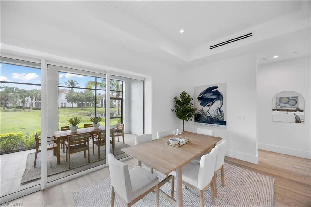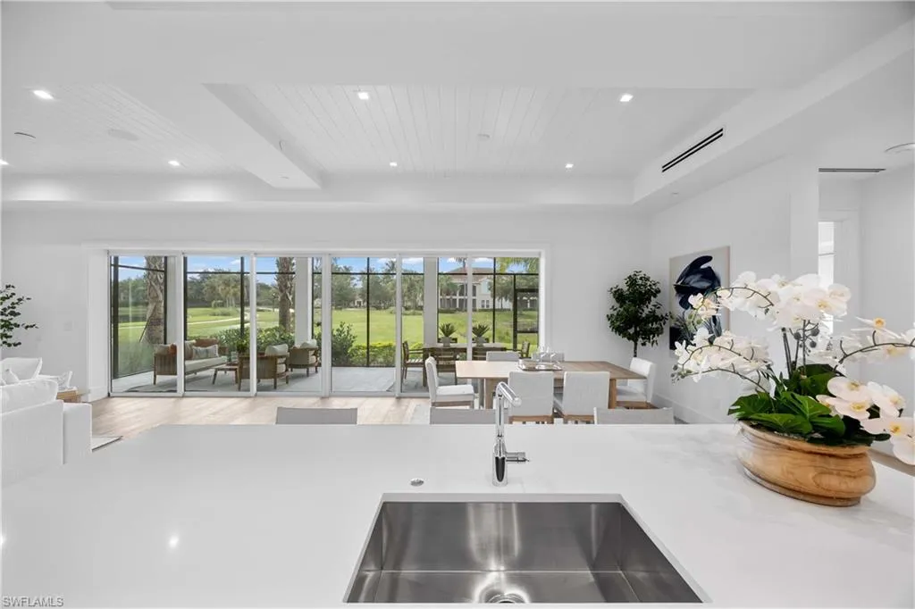 cooktop. The French, white oak flooring adds warmth and superior style throughout the home. The high ceilings and unique contemporary windows are particular to Dorado, with shiplap ceiling accents throughout. The primary bedroom suite is exceptional, with one of several shiplap ceilings and a remarkably large closet. The equally impressive laundry area is filled with built-in cabinetry, grey front-load appliances and extra storage. The oversized lanai brings the outdoors in to create an additional living area. The club, spa, and fitness center are the heart of Fiddler’s Creek social environment, with additional options from the private Tarpon Club membership and multiple private golfing options. Pickleball, tennis and miles of paths for recreation and bicycles are a part of this wonderful community. The stunning physical environment and proximity to Marco Island and Old Naples make Fiddler’s one of the most desirable gated communities.