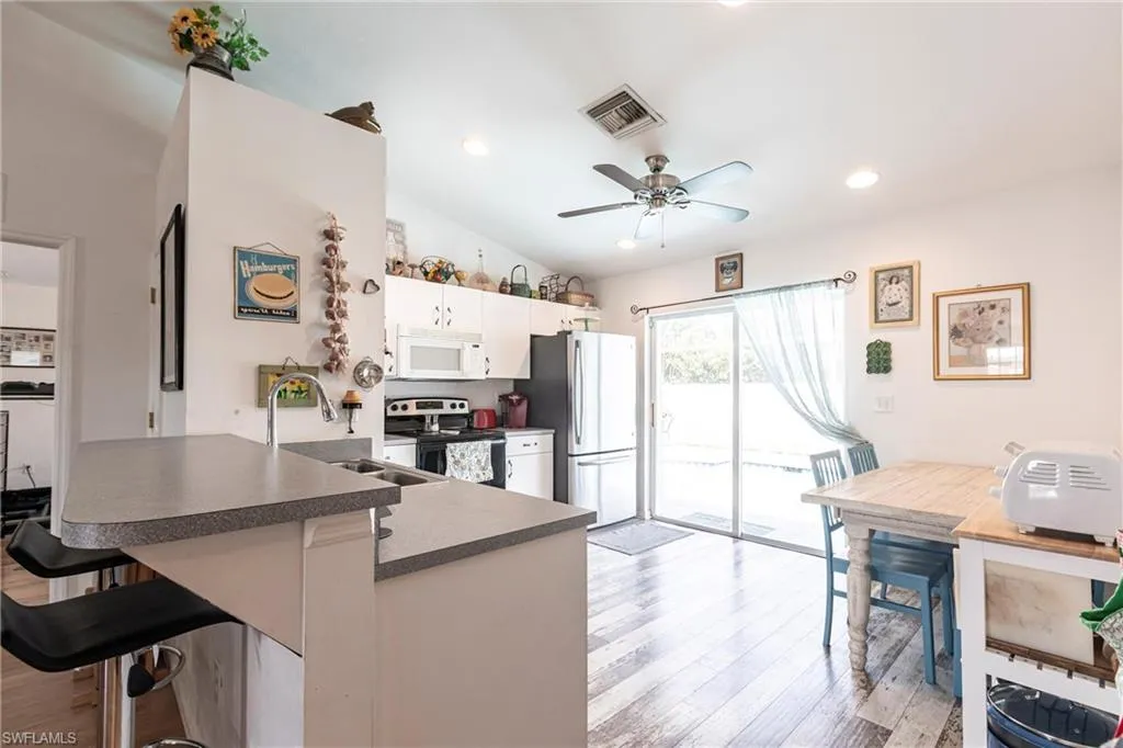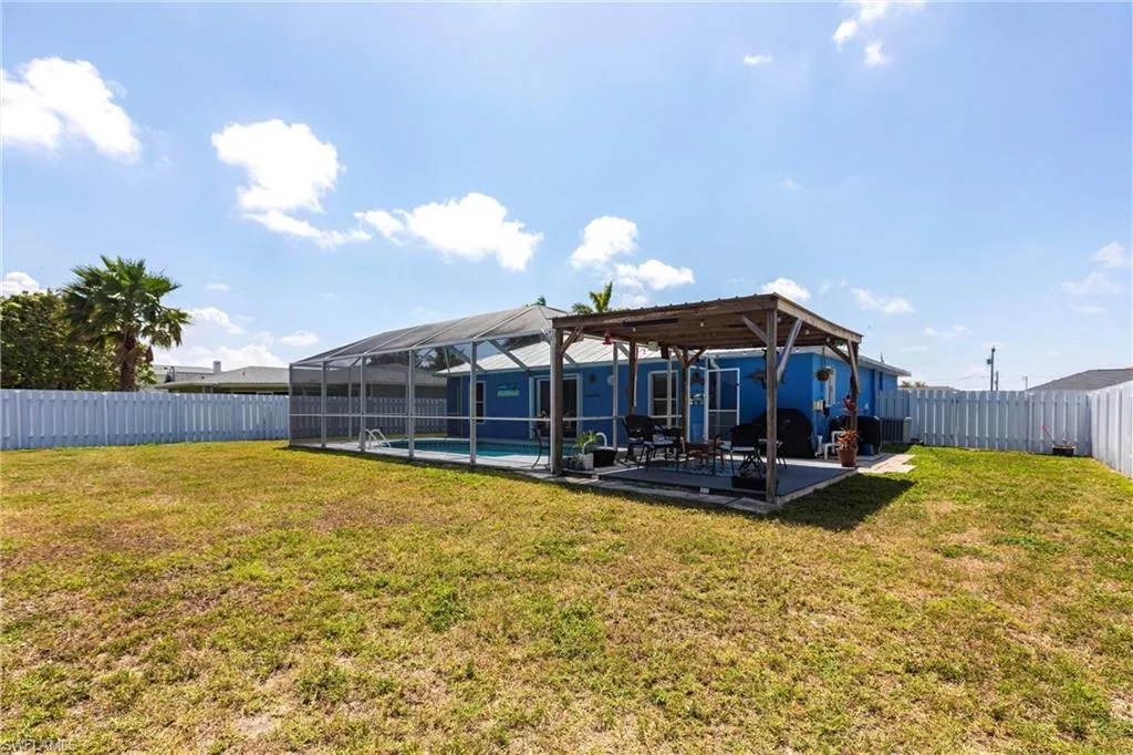 Welcome to your dream home in Cape Coral! This stunning single family home boasts 3 bedrooms, 2 bathrooms, and a 2 car garage, providing ample space for you and your family. The in-ground pool is perfect for relaxing on hot summer days, while the wood flooring adds a touch of elegance to the interior. Step outside to the gazebo with a metal roof, where you can enjoy outdoor meals or simply unwind in the shade. The new energy efficient pool pump ensures that you can enjoy your pool year-round without breaking the bank. Located close to shopping and entertainment, this home offers convenience and accessibility to all the amenities you could need. The private back yard provides a peaceful retreat where you can escape the hustle and bustle of everyday life. Whether you’re looking to entertain guests or simply relax in your own oasis, this home has it all. Don’t miss out on the opportunity to make this beautiful property your own and start living the life you’ve always dreamed of in Cape Coral. Zoned with no flood insurance requirement.