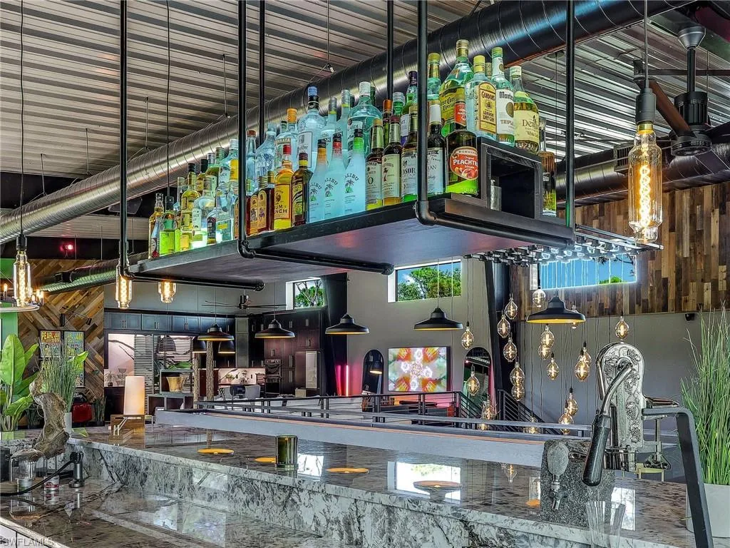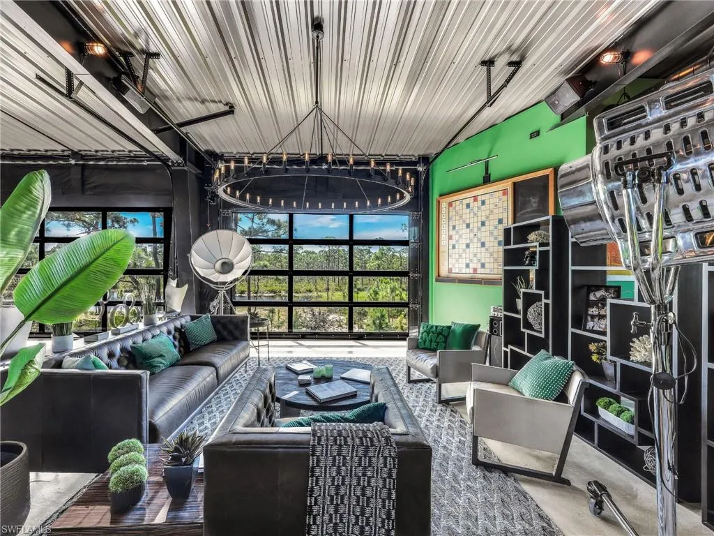 Welcome to Blackstone, designed and built by Blue Sky Design + Allied Steel [known for work with Tesla, NASA, and Rolls Royce] offers a peaceful, modern, and comfortable lifestyle that is an effortless extension of its natural surroundings. Tucked deep in the Florida Pines and Palmettos on 10 dry acres (no wetland), backing up to a 567-acre protected preserve. This 7,500 SF Modern Farmhouse is one of the most architecturally striking and structurally sound homes in all Southwest Florida. Constructed with solid concrete on both floors, PGT hurricane windows & doors, and red iron structural steel. This is where years of design, engineering, and lifestyle come together in an unforgettable way. From the custom iron front doors, Redwood cladded walls, custom welded open staircase in the atrium, and massive Edison Bulb chandelier – every element is a full sensory experience. Ultimate livability with a 4,000 SF 1st floor with primary suite & bedrooms, and a 3,500 SF 2nd floor living space with flex room/studio. The second floor offers an open concept with dedicated spaces for dining, entertaining, and gaming. Imagine, as a family, sharing a space even when you are working on separate activities. No other home offers a sense of togetherness and privacy like this. Enjoy a cinematic experience with a dedicated professional Dolby Atmos theater/screening room equipped with 126” digital 8K projection, acoustically treated walls & ceilings, custom lighting, and an audio system engineered to rival commercial theaters. A cool blend of luxury and nature. Cambria Quartz counters, modern art, industrial steel beams and concrete meet mature trees and private walking paths, a 3/4 acre pond and ATV trails. Dedicated wine room with professional wine racks and separate shelving for 200 bottles of beer storage/aging. Restaurant-style full bar with Zephyr full-size appliances and built-in speakers! Professional whole home AV system with 10 independent audio zones, JBL professional speakers and Crown amplifiers. Built for those who want to live, work, and play without compromise. Bunker strength, tech room, dedicated Xfinity pedestal & LCEC transformer, underground utilities. 5 min. from local marinas & boat launches. The property is at/above newest flood elevation — never flooded. The 70×30 garage [2,100 SQFT] is an attached multi-car garage with 28 ft ceilings and drive-through access for 60+ ft vehicle/motorcoach, boat, or toys. It has (3) 12’x14’ custom [Overhead Door] roll-up doors, front & rear concrete pads for equipment, trailers, or concealed storage. Prewired for a 20-amp exhaust system, professional JL audio PA speaker system, epoxy floor, 30,000 lumens high bay lighting, and 400 amp electrical service, and (2) industrial fans. Whether you’re hosting a party, showcasing a car collection, catching a movie in your private theater, or escaping to a fortress of tranquility, this one-of-a-kind estate is unforgettable. There is nothing else like Blackstone.