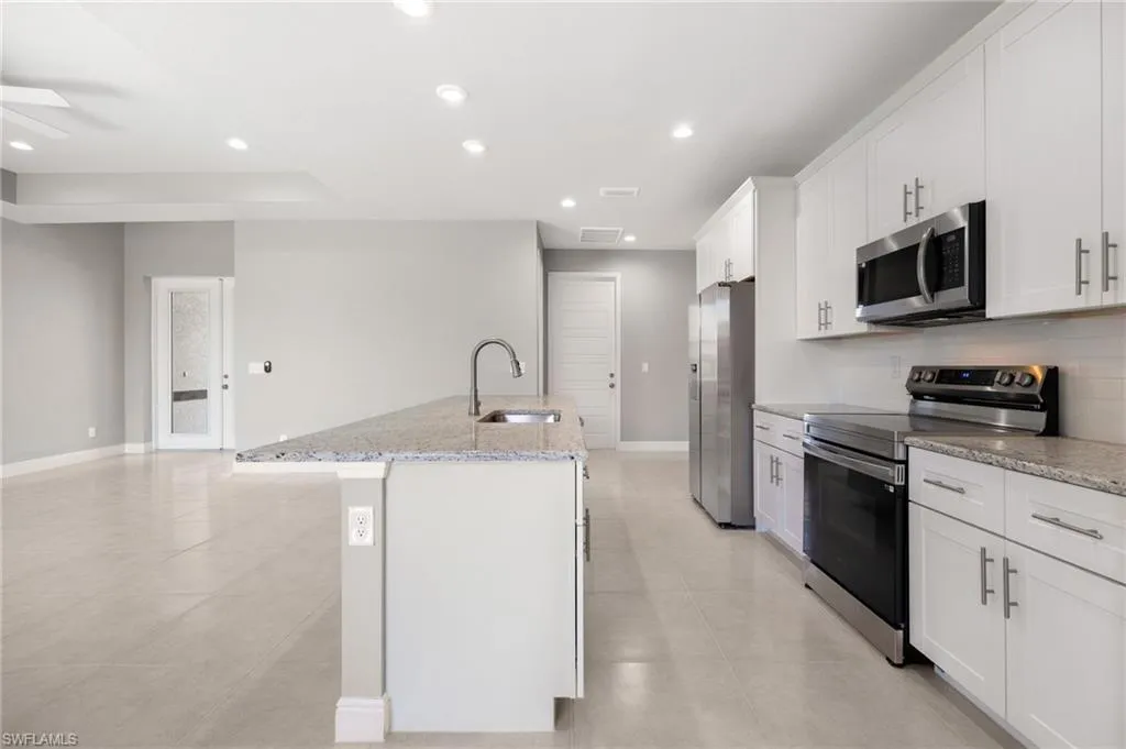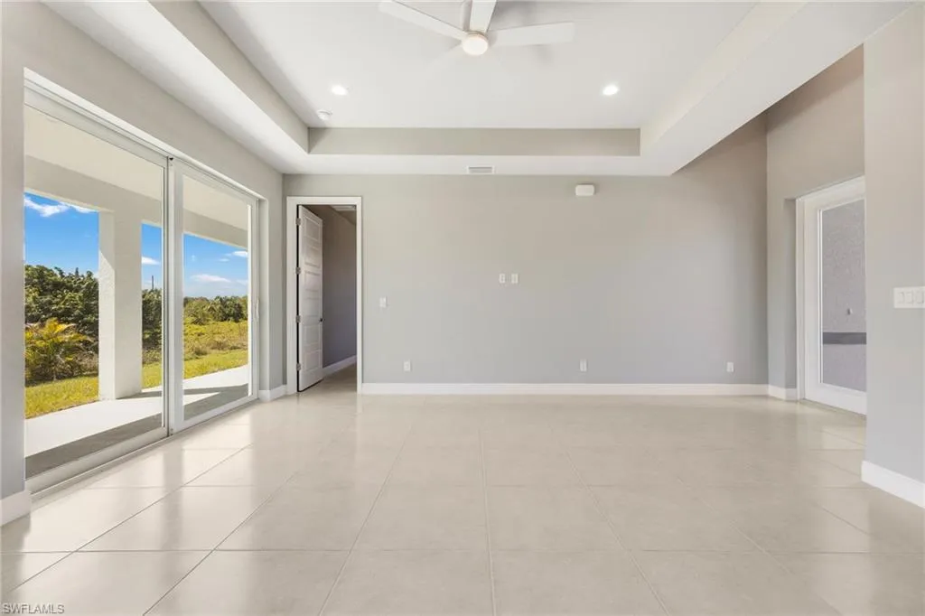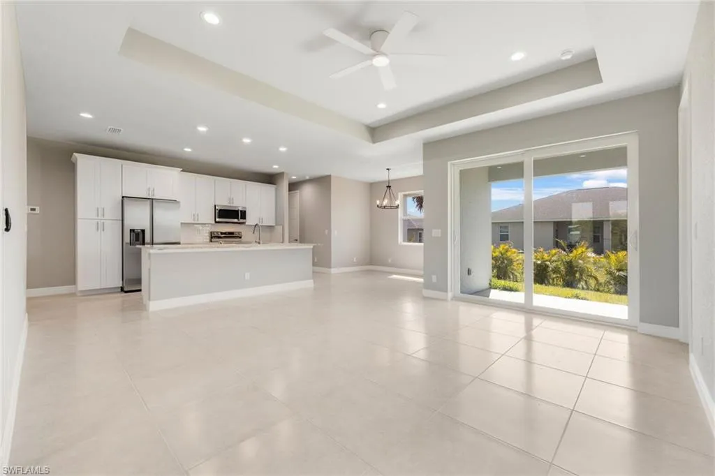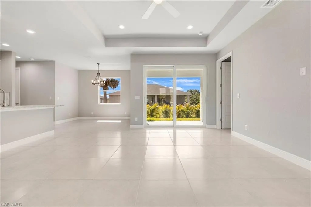 Welcome to this exquisite new construction home, where modern design meets ultimate comfort! Boasting 4 spacious bedrooms and 2 luxurious bathrooms, this home is a perfect blend of style and functionality. Step inside through the impressive double glass doors and be greeted by elegant tray ceilings and impact-resistant doors and windows that ensure both beauty and safety. The all-tile flooring throughout adds a touch of sophistication, while the floor-to-ceiling tiled master shower promises a spa-like experience every day. The interior is designed with 8′ doors and an impressive 9’4″ ceiling height, creating an open and airy atmosphere. The kitchen is a chef’s dream, featuring stainless steel appliances, level 2 granite countertops, a large charming island, and soft-close cabinets. Dining in style is easy with a beautiful chandelier above the dining room. The master suite is a sanctuary, offering his and her walk-in closets, a large master shower, and double sinks in the master bathroom. Convenience is key with an automatic garage door opener, ceiling fans in the bedrooms and great room, an irrigation system, and front gutters. The laundry room with a sink near the garage adds practicality to daily living. Relax and entertain on the large lanai under trusses, perfect for Florida living. And don’t forget, this home comes with a FREE 10-YEAR HOME WARRANTY for your peace of mind! ()The fourth bedroom is a versatile large office, perfect for working from home or creating your dream workspace. Don’t miss out on this stunning new home!