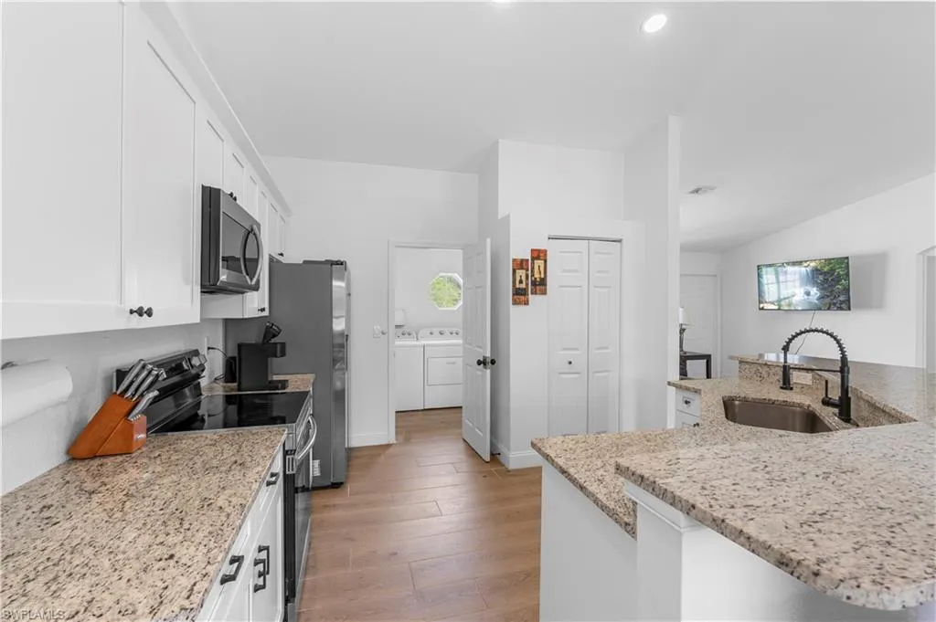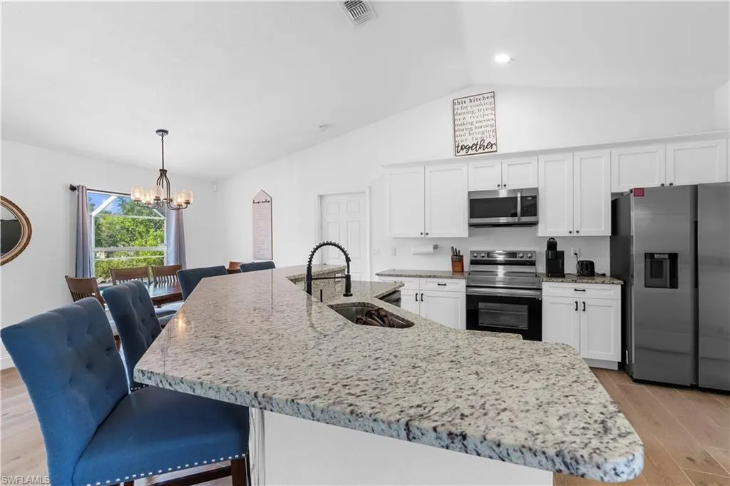 Introducing a stunning 3-bedroom, 2-bathroom home with a screened-in heated pool and spacious lanai, perfectly designed for both relaxation and entertaining. Ideally located on a corner lot, this residence offers an open floor plan with freshly painted interiors and exteriors that create a bright, welcoming atmosphere. The master suite features a private ensuite bathroom, while the home is enhanced by stylish tile flooring throughout, brand-new stainless-steel appliances, granite countertops, and upgraded light fixtures. Both the kitchen and bathrooms have been tastefully remodeled to combine modern elegance with everyday functionality.