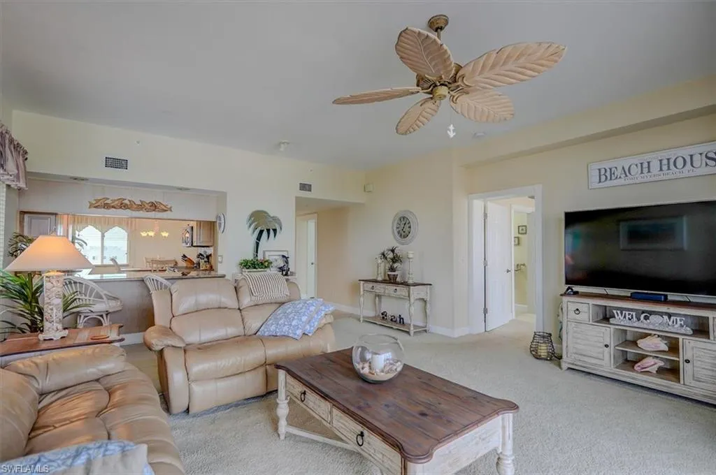 Catch all the waterfront action from this turnkey furnished CORNER, PENTHOUSE (6th floor) Casa Marina condo with UNDER-BUILDING PARKING! Estero Bay and main/intersecting canal views. Watch for dolphins and manatees and be entertained by the boating parade.