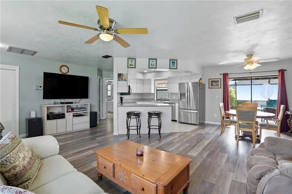 Looking for privacy? This absolute charmer is available and ready for the next owners. Situated on a large corner lot giving you a beautiful lake view, this meticulously cared for pool home is located in one of Lehigh’s most desirable neighborhoods. Newer Roof (2021) New Whirlpool Appliances including Oven, Dishwasher, and Refrigerator in 2022, Freshly Painted, Updated Flooring in the living area, automatic sprinkler system keeps the yard looking fresh. Enjoy the sunrise from your screened in lanai while looking out at the lake. This home is perfect for a first home buyer, snow bird, or an investor. Schedule your appointment today and see it for yourself.