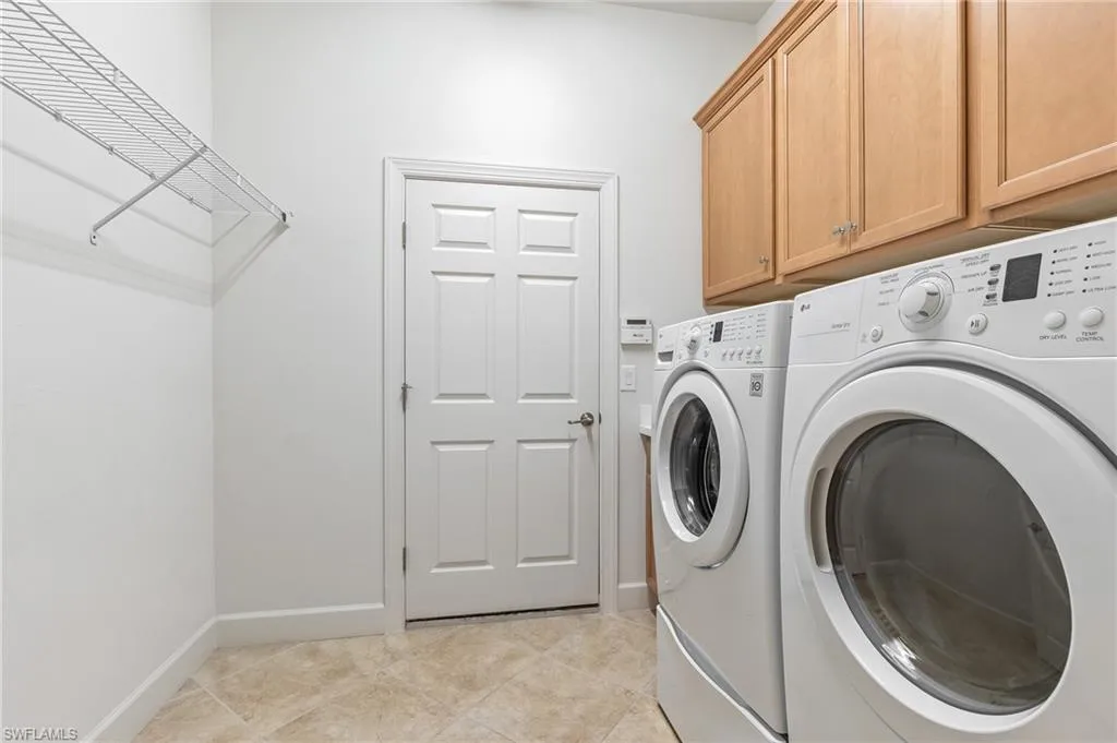 The spacious kitchen is complete with a large island, stainless steel appliances, beautiful wood cabinets with custom pull-out drawers, granite counters, and a spacious walk-in pantry. The great room’s pocket sliding doors open to a large lanai, providing the perfect space to add a luxurious pool and create your own private oasis. The large primary suite is a true retreat, featuring a spacious walk-in closet with custom shelving, a glass-enclosed shower, a soaking tub, and dual sinks. Furniture is also available for purchase, making this home a turnkey option.