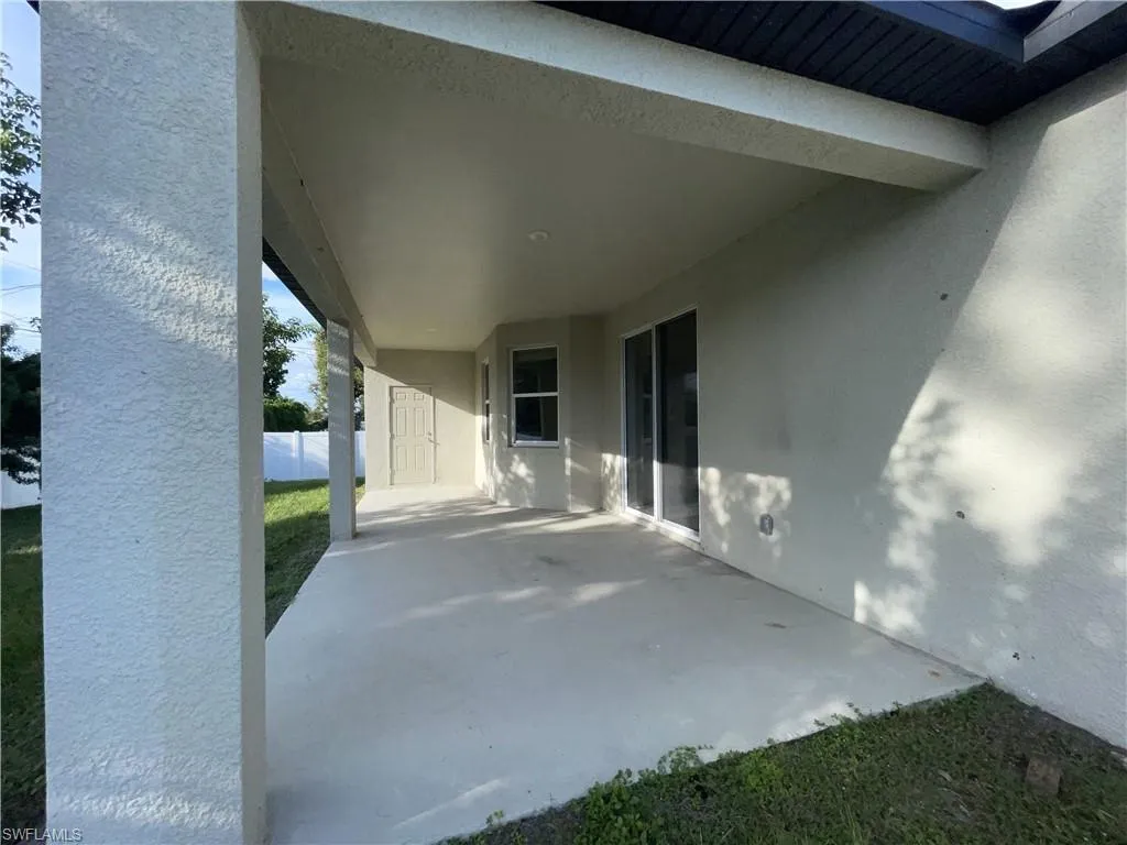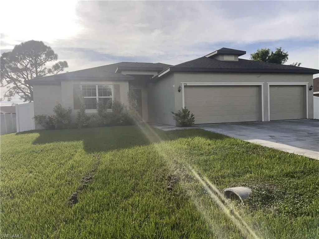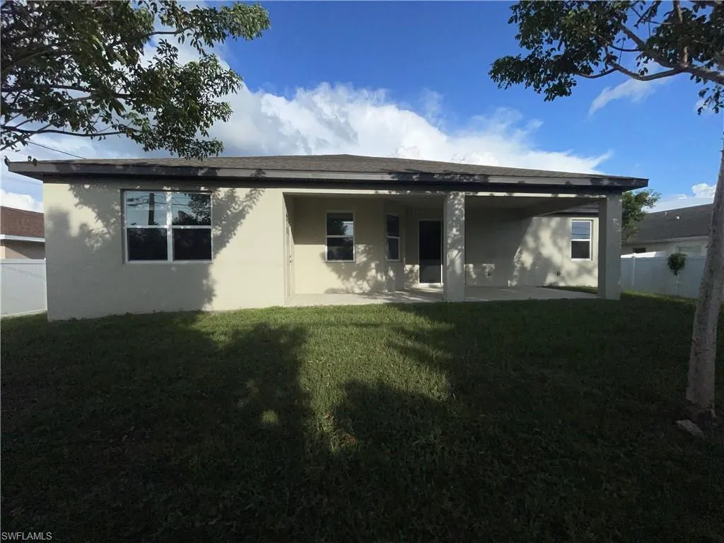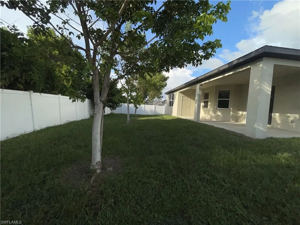 Rare, functional, and spacious five-bedroom floorplan! Welcome to this amazing home, which boasts over 2400 sq. ft. of living space, with a great room floor plan perfect for entertaining a few or a crowd, and a kitchen featuring loads of cabinet space, including 42″ upper cabinets with crown molding, stainless steel appliances, quartz countertops, a breakfast bar, and a walk-in pantry. The spacious master suite features an en-suite bathroom with separate dual sinks and vanities, soaking tub, tiled shower with glass entry, and a large walk-in closet and access to the covered lanai. The remaining bedrooms are split throughout the home, offering privacy for each bedroom. An additional full bathroom features dual sinks, a shower, and a tub combo. An additional half bath for guest use and a separate laundry room complete the interior. The exterior features a large covered lanai, fenced-in rear yard lined with trees for future shade, and a three-car garage. This home is centrally located off Santa Barbara Blvd, providing convenient access to shopping, major roadways, and the South Cape downtown district. This home may qualify for the FHA’s $100 down program. HUD Case# 095-648229