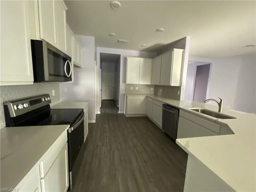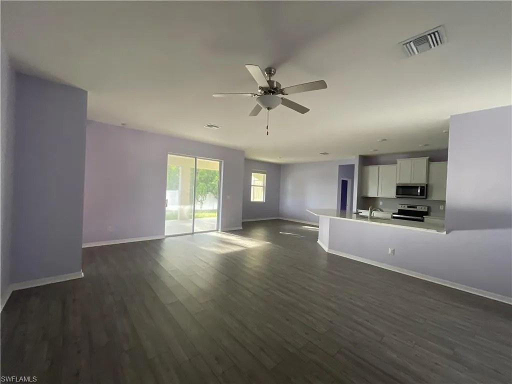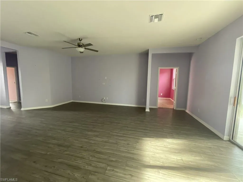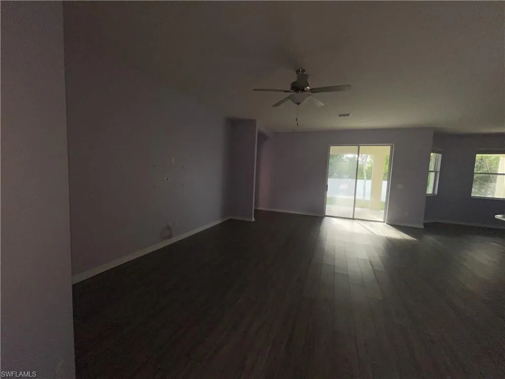 Rare, functional, and spacious five-bedroom floorplan! Welcome to this amazing home, which boasts over 2400 sq. ft. of living space, with a great room floor plan perfect for entertaining a few or a crowd, and a kitchen featuring loads of cabinet space, including 42″ upper cabinets with crown molding, stainless steel appliances, quartz countertops, a breakfast bar, and a walk-in pantry. The spacious master suite features an en-suite bathroom with separate dual sinks and vanities, soaking tub, tiled shower with glass entry, and a large walk-in closet and access to the covered lanai. The remaining bedrooms are split throughout the home, offering privacy for each bedroom. An additional full bathroom features dual sinks, a shower, and a tub combo. An additional half bath for guest use and a separate laundry room complete the interior. The exterior features a large covered lanai, fenced-in rear yard lined with trees for future shade, and a three-car garage. This home is centrally located off Santa Barbara Blvd, providing convenient access to shopping, major roadways, and the South Cape downtown district. This home may qualify for the FHA’s $100 down program. HUD Case# 095-648229