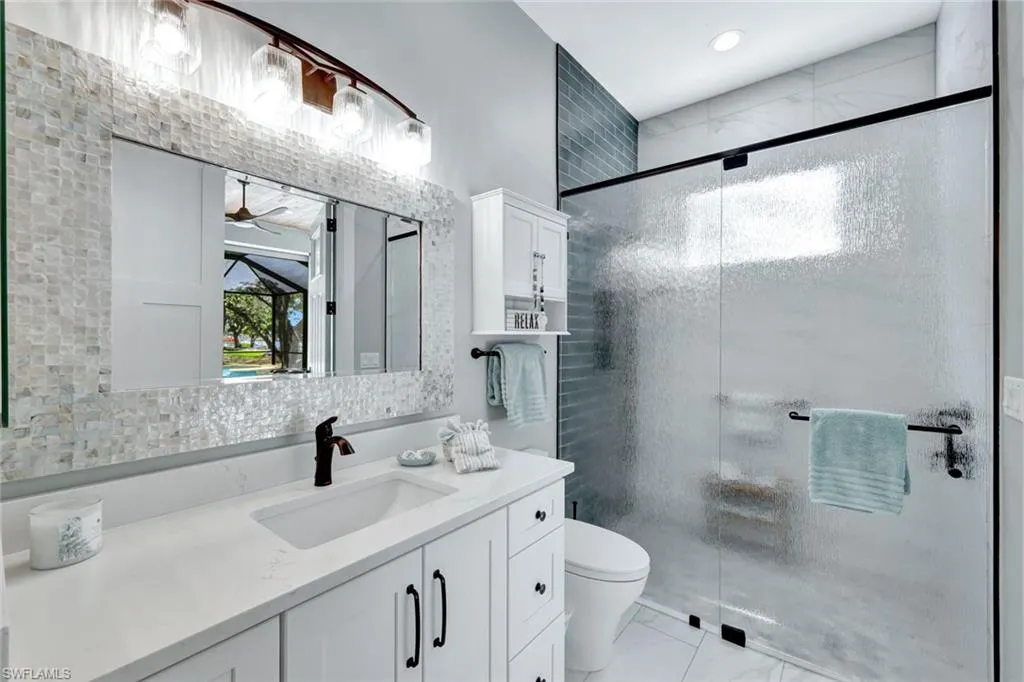 Engineered for peace of mind, the home features cement-filled concrete block construction, impact-resistant windows and doors, StormSmart screens on all lanais, and modern energy-efficient systems. Outdoor living is the showpiece: a heated pool & spa, fully equipped summer kitchen, covered lanai, and an expansive patio made for golden-hour gatherings. Native landscaping and fruit trees amplify the tropical feel, while landscape lighting, flood lights, and cameras provide confidence. A two-car garage, circular drive, and ~65 ft of water frontage complete the picture.