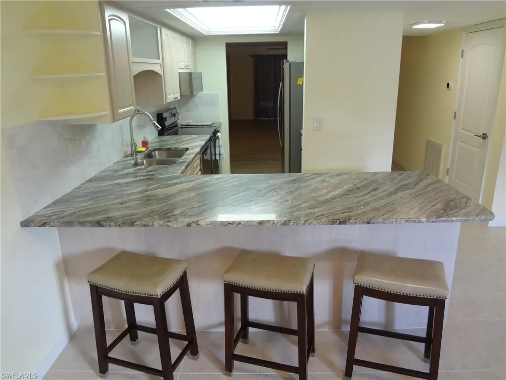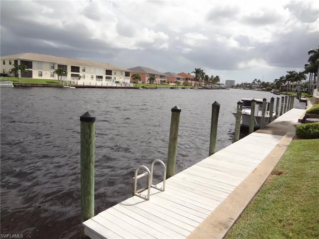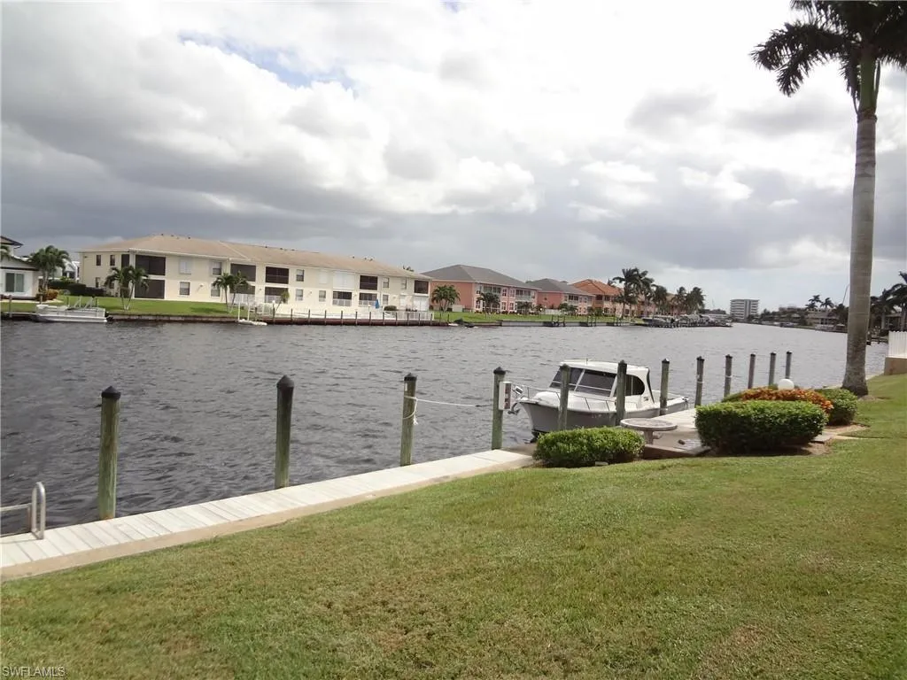 LIKE A MODEL! Absolutely gorgeous GULF ACCESS condo on the WIDE RUBICON CANAL with massive water views! DOWNSTAIRS, CORNER UNIT with extra windows allowing more natural light, and privacy! HEATED POOL, BOAT DOCKAGE, COVERED PARKING & OUTSIDE STORAGE CLOSETS for each unit! Interior has been beautifully updated! All tile floors, including plank tiles in the main living areas! Remodeled kitchen with granite tops, stainless steel appliances, recessed ceiling with lighting and extra cabinets! Remodeled bathrooms too! Master bath has ‘walk-in’ tub/shower combo! Guest bath has curb-less walk-in shower! Inside laundry with washer/dryer. Access to screened, tiled lanai from family room and master bedroom! Master has ‘walk-in’ closet! Private, front exterior courtyard area. Inside the front door, there’s a room that could be used for a den, office, or additional dining area. Accordion style hurricane shutters! NO FLOODING INSIDE EVER! Great location, convenient to restaurants, shopping, banks, parks, churches and more! 55+ community. Not pets & no leasing.