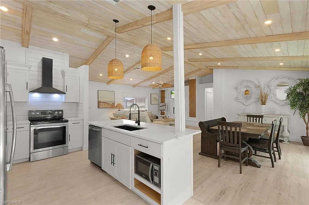 Step inside and experience the seamless blend of coastal charm and a great-room concept, with a stylish kitchen stainless appliances and a thoughtfully designed layout perfect for entertaining. The home includes three bedrooms, two beautifully updated bathrooms, one of which serves as a convenient pool bath and an open, airy floor plan filled with natural light.