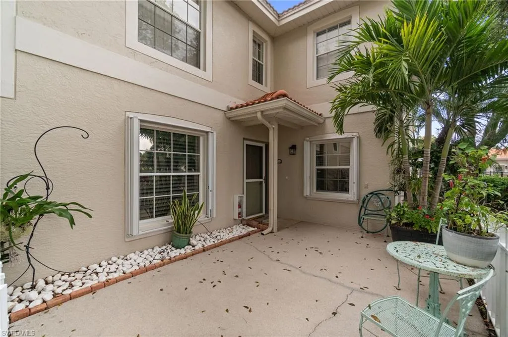 Welcome to Pipers Grove, one of Naples’ most popular and charming gated communities! This light and bright 2-bedroom, 2-bath corner end unit offers convenience and comfort at every turn. Enjoy first-floor living with an attached garage, just steps from the community pool, clubhouse, tennis courts, bocce ball, and sun deck pier—everything you need for a true resort-style lifestyle. Inside, you’ll find tile flooring throughout, granite countertops, and stainless steel appliances in the kitchen. The enclosed lanai expands your living area, providing a comfortable space to relax even on warmer days. Outside, your private front courtyard is perfect for morning coffee, gardening, or a quiet read. Additional features include electric hurricane shutters for peace of mind. Offered turnkey furnished, this condo is move-in ready—simply bring your suitcase and start enjoying the best of Naples living today!