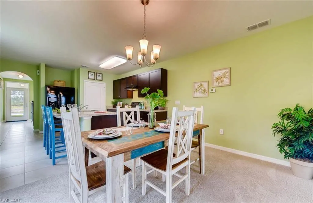 The heart of the home is the open kitchen overlooking the dining area and great room, complete with an oversized island with bar seating, generous cabinet and counter space, and stainless steel appliances, perfect for both everyday living and entertaining. Large windows and sliding glass doors bring in abundant natural light and lead to your covered lanai, extending your living space outdoors.