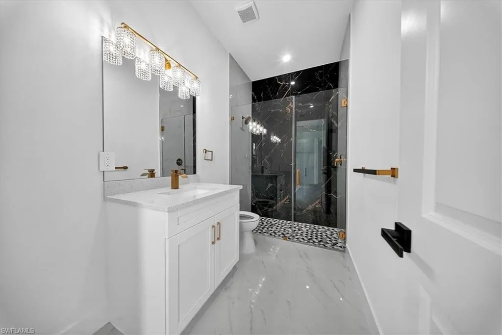 The kitchen features custom soft-close custom cabinetry, crown molding stainless steel appliances, quartz countertops, and a sleek island that’s perfect for entertaining. The primary suite includes a spacious walk-in closet and a beautifully tiled shower with frameless glass for a clean, elegant finish.