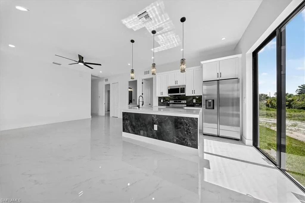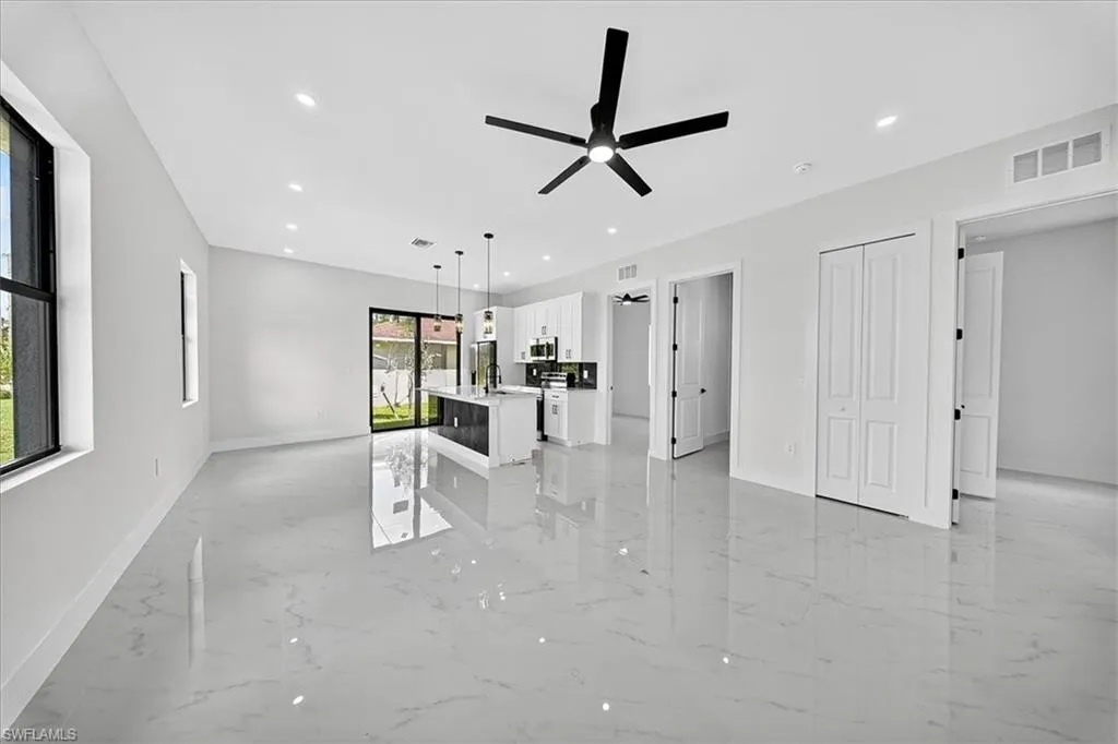 Other highlights include modern black hardware, epoxy-finished garage flooring, tankless water heater, and upgraded tropical landscaping with palm trees. Conveniently located just minutes from State Road 82, shopping, and dining this home offers a move-in-ready lifestyle built for the modern Florida homeowner.