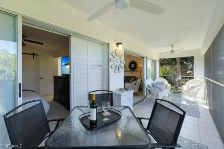 Highly Sought After 2nd Floor Corner End Unit with large side window & Beautiful Sunset Views. This Recently Renovated End Unit located in Abbey on the Lake at Imperial Golf Estates includes 2 Bedroom 2 Bath is Move In Ready! Long lake and fountain views, best in the community! Newer Updates include Carpeting & Painting in Neutral Colors. Newer Ceiling Fans, & Interior Shaker Doors throughout. Open & Bright Kitchen with Everything New within the last year and a half: Soapstone Counter Top, Tile Backsplash, Sink & Faucet, Recessed Lighting, Updated Shaker Cabinets. Laundry Room & Storage Cabinets Hidden Behind Newer Plantation Bifold Doors, washer & dryer included. Functional Office/Den with Large Window & Newer Ceiling Fan/Light. Dining Room Boasts Side Window Views with Plantation Shutters & Newer Edison Bulb Light Fixture. The Spacious Living Room Offers Waterfront Views & Indoor/Outdoor Living onto Screened Lanai. Enjoy Triple Stacker Sliding Plantation Shutters for Privacy. Primary Suite Decorated with Board & Batten Accent Wall & Includes Private Exit to Lanai, Walk-In Closet with Storage System & Retractable Ladder to Attic for Extra Storage. Step into your Primary Bath through Sliding Barn Door with Updated Vanity, Lighting, & Shower Fixtures. Your Guests will Enjoy The Tastefully Decorated 2nd Bedroom with Adjacent Full Bathroom with Tub, Featuring Newer Vanity, Lighting, & Bath Fixtures. Abbey on the Lake Condo Community updates include New Roofs in 2022, Resurfaced Parking Lot in 2024, Exterior Painted in January 2025. This gated Community offers a heated pool overlooking the lake. Imperial Golf Estates two 18-hole courses, East and West, are both easily walkable, eminently playable and extraordinarily maintained year-round to a level consistent with the nation’s top-rated courses. Imperial Golf estates not only offers golf, but also social and family membership options. Conveniently located in North Naples, just minutes to beaches, downtown Naples, shopping, dining and more! Also, just a short walk to the Gomez Tennis Academy.