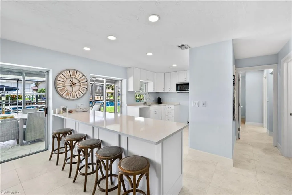 Discover this rare Gulf-access property tucked away at the end of a private cul-de-sac with intersecting canal view. This homesite is wider than the standard with 100ft of water frontage! The current residence features three bedrooms, two bathrooms, a two-car garage, spacious pool, and an impressive boat dock with lift. The 586 sf dock boasts a 10,000 pd lift and large lounge area with ample space to relax and take in sunsets over wide intersecting canal views. Enjoy the charm of this 1,600 sq. ft. home as is, or take advantage of the prime site to design and build your custom dream residence. This Flroida lifestyle beach and boating location is unmatched. Walk or bike to Vanderbilt Beach, minutes from waterfront dining, and just a short ride to Mercato, Waterside Shops, and 5th Avenue.