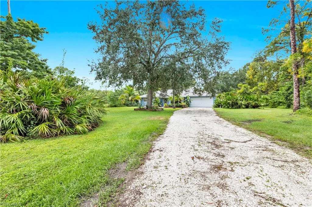 High-and-dry lot, solid concrete construction, barn with utilities, and multiple outbuildings — perfect for updates and strong upside in a desirable location. Welcome to your chance to own one of San Carlos Estates’ most charming homes! This 3-bedroom, 2-bath concrete block bungalow sits high and dry on 1.25 acres of beautifully landscaped property — offering endless potential in one of Bonita Springs’ most desirable neighborhoods. Enjoy peace of mind with a low homeowner’s insurance policy, no flood zone, and a dual-well irrigation system keeping your park-like setting lush year-round and affordable. The property features a two-stall barn/garage with 50 AMP and 30 AMP electric and water, a Tuff Shed for storage, and a versatile “she shed” ideal for a studio, home office, or hobby space. Surrounded by mature trees and tasteful landscaping, this home provides a private, tranquil environment with plenty of room to expand, garden, or even bring your horses and toys. NO HOA and minutes from shopping, dining, and the BEACH! Perfect for first-time buyers, investors, or anyone seeking a value-add opportunity, this solid, well-built home offers incredible upside and unmatched privacy in a prime location close to shopping, dining, and Gulf beaches. Aggressively priced—don’t miss this rare opportunity in San Carlos Estates!