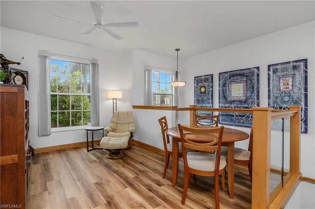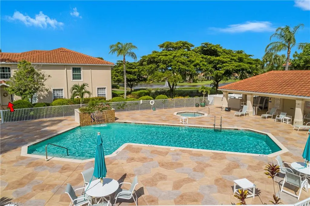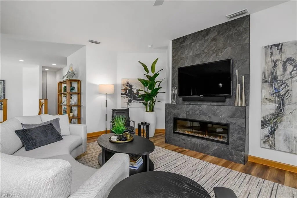 SIMPLY STUNNING COMPLETE RENOVATION of this upper level coach home in the best location next to the community pool and gas grills, yet completely private rear view of the third hole of the Golf Course and Lake in the demand Gated Golf Community of Copperleaf at the Brooks. No expense was spared in the remodel completed in 2023!! The wall dividing the kitchen and great room was removed and a new kitchen with a large center island was added to create a modern open floor plan complete with an electric fireplace with a floor to ceiling surround, new luxury vinyl flooring, luxury cabinets and countertops, new appliances, designer lighting and fans, and a beverage cooler in a free standing dry bar. The bathrooms are fabulous and the bedrooms were completely remodeled including upscale closet systems. All of the single hung windows, front door and sidelights were replaced in 2020 with hurricane rated windows. There is Storm Smart Hurricane Screen protection for the lanai. New roof 2021, HVAC 2023, added insulation in attic, epoxied garage floor, shelving and cabinets in garage, and a glassed in staircase with handrail. This coach home has it all!! And….bonus! You will love the location close to shopping, dining, Southwest Florida beaches, and the SWFL International Airport. Copperleaf is a premier gated, bundled golf community so as soon as you close on your home, you are member of one of the finest bundled golf communties SWFL has to offer. Enjoy it’s newly remodeled, state of the art, clubhouse and restaurants. Other amenities include tennis, bocce, events, library, fitness center, and card and tile games. Private membership to the Brooks Commons Club is optional and offers a private restaurant, fitness center, pickle ball, optional beach club, and events.