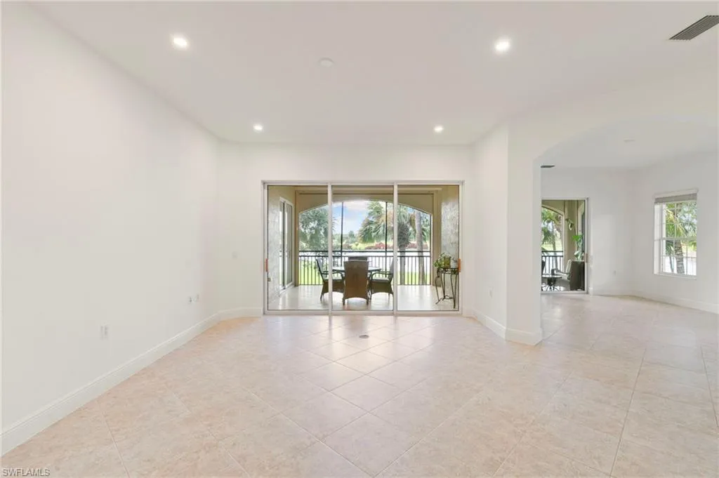 Experience refined resort-style living in this spacious 3-bedroom + den, 3-bath end-unit condo, ideally situated in the sought-after Cherry Oaks community. Offering over 3,000 sq. ft. of thoughtfully designed living space, this residence seamlessly blends comfort, style, and function. Step onto the oversized lanai and take in sweeping golf course and tranquil water views — the perfect backdrop for relaxing evenings or entertaining guests. The gourmet eat-in kitchen features granite countertops and a large pantry, ideal for everyday meals or hosting dinner in the elegant living-dining area. The versatile den offers a quiet retreat for work, reading, or hobbies. Additional features include high ceilings, abundant storage, a private 2-car garage, storm screens, and an elevator for added convenience. This move-in ready home is a rare opportunity to enjoy stunning views and exceptional space in one of the area’s most desirable neighborhoods. The resort style community of Fiddler’s Creek is enhanced by a club and spa, fitness center, swimming pools, two golf courses, tennis courts, pickleball courts, a bocce court, fine and casual dining, social activities, and miles of biking and walking paths. Optional beach club and marina memberships are available. Experience the epitome of luxury living, where every detail is thoughtfully curated to complement your lifestyle.