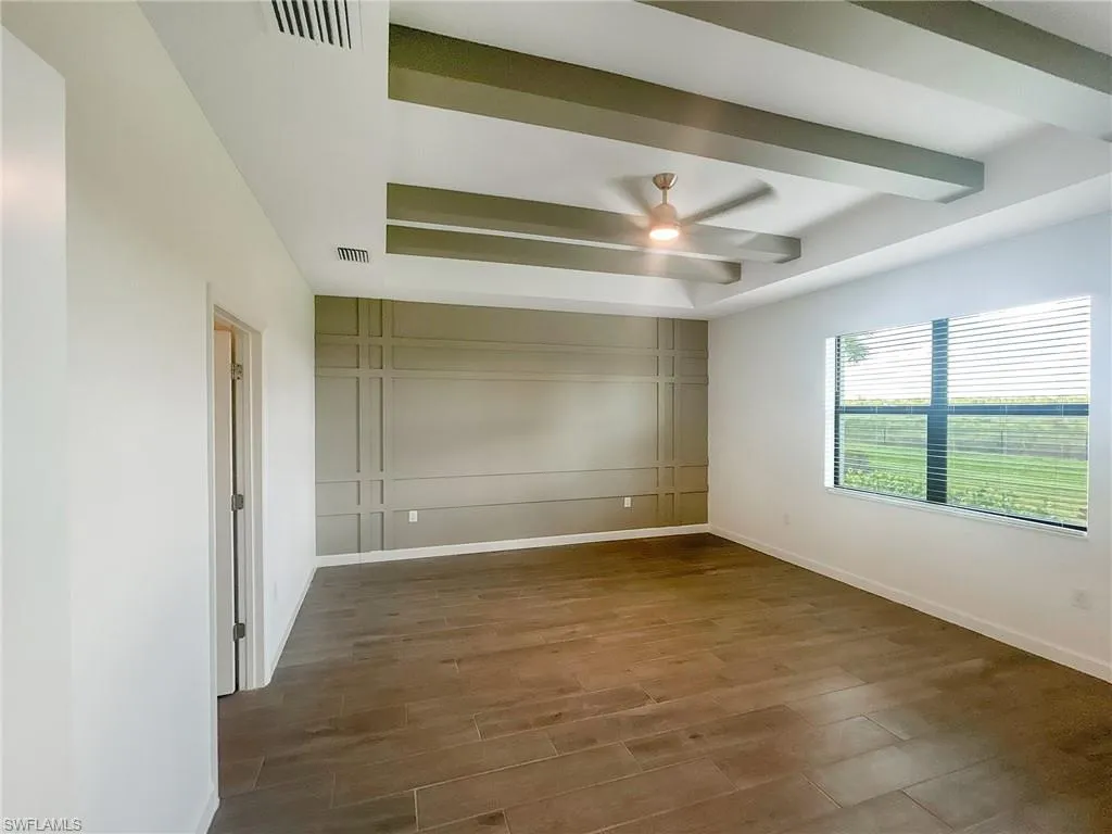 The kitchen stands out with a new high-end tile backsplash, center island wrapped in shiplap with custom paint, and plenty of space for gatherings. The spacious primary suite includes a tray ceiling with beams, two custom walk-in closets, and an elegant bath with dual vanities and a walk-in shower.