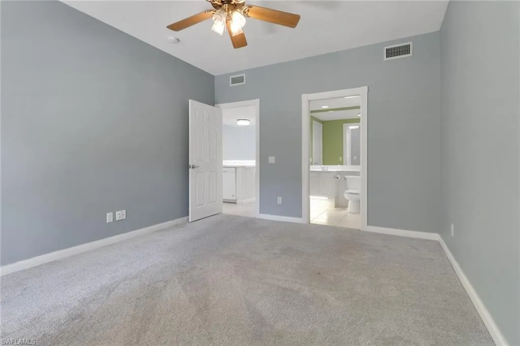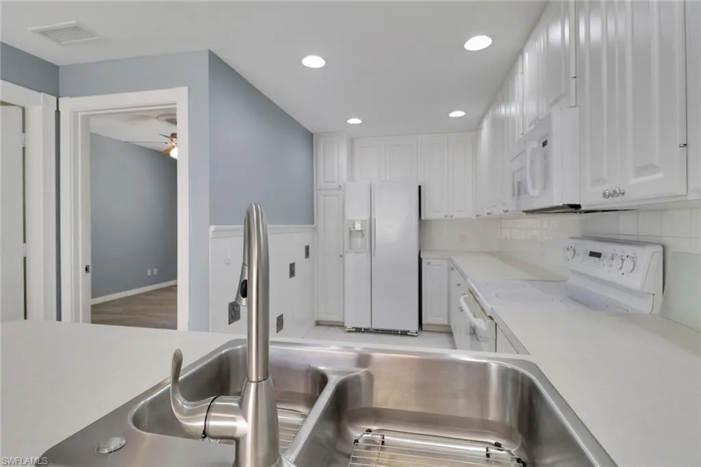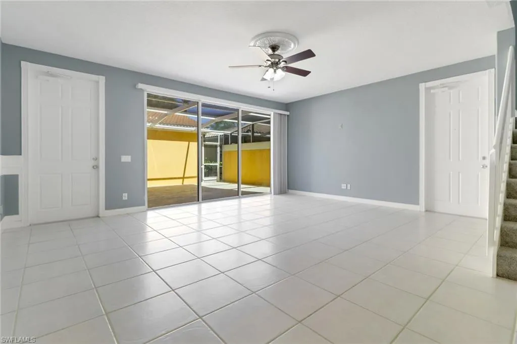 Welcome to this beautifully maintained 3-bedroom, 3-bath townhome located in the desirable gated community of San Remo in Bonita Springs. This light and bright residence offers an open floor plan with a spacious kitchen featuring solid-surface countertops, white cabinetry, and a breakfast bar that flows seamlessly into the living and dining areas—ideal for everyday living and entertaining.