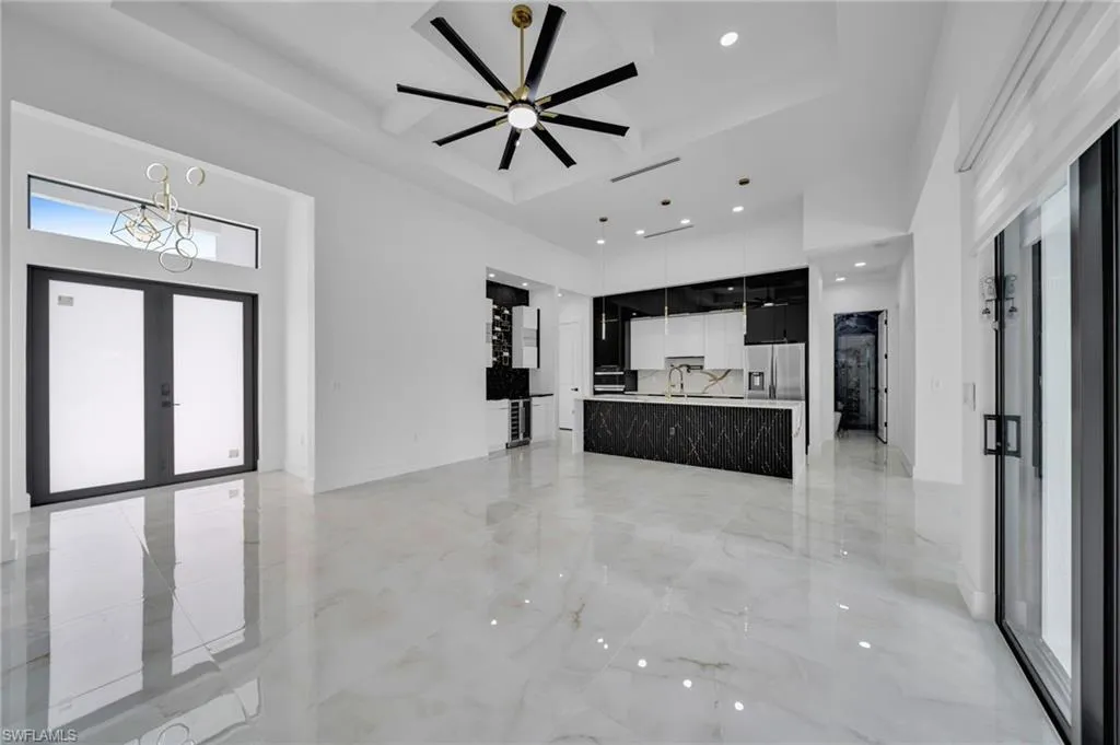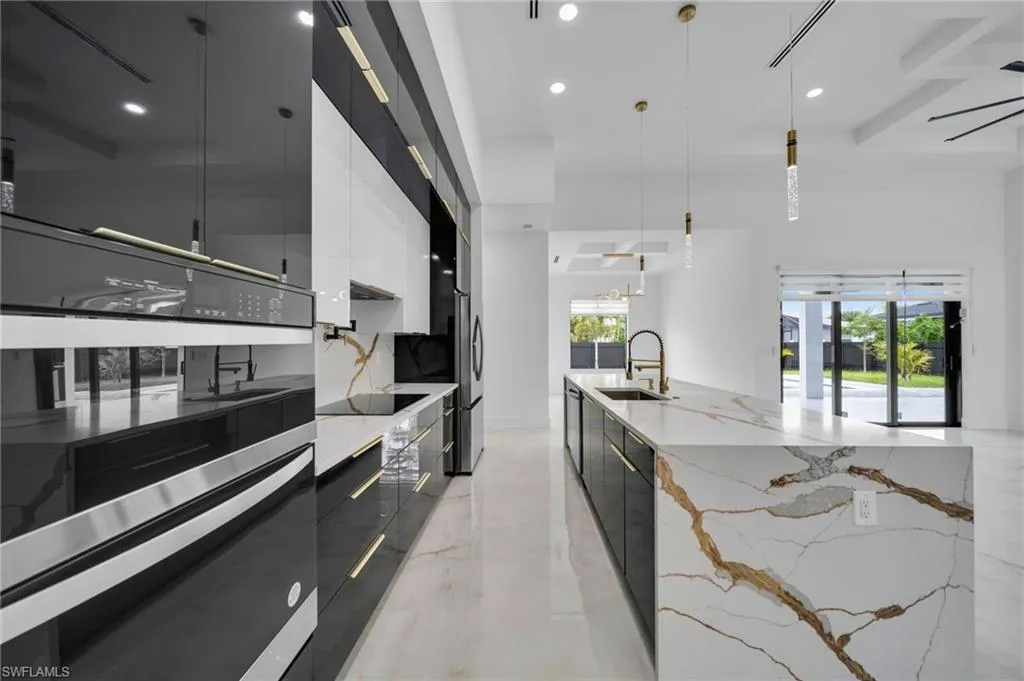 ALL ASSESSMENTS PAID, Discover this stunning 4-bedroom, 3-bath home perfectly positioned on an oversized .34-ACRE TRIPLE LOT in the desirable Southwest Cape Coral area near SURFSIDE Shops. Boasting 2,020 SQFT under air, this residence showcases modern design and luxury finishes throughout — including elegant tile flooring, porcelain-tiled bathrooms, HIGH ceilings, tray ceilings, and tall glass doors that fill the home with natural light.