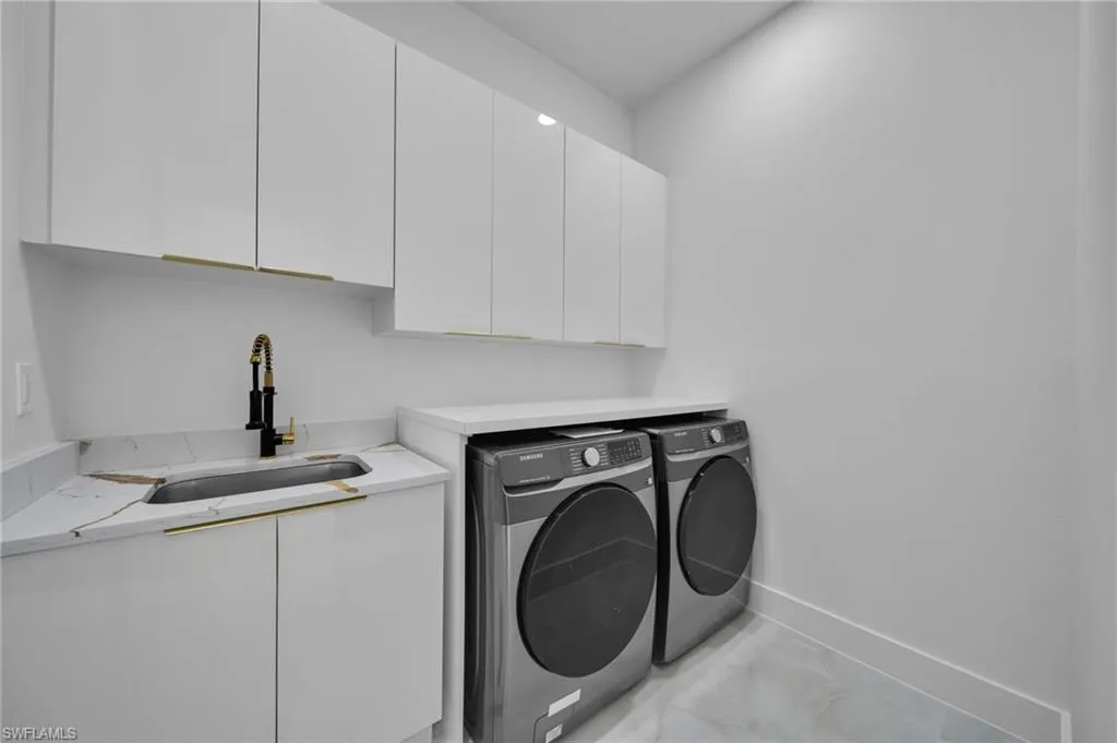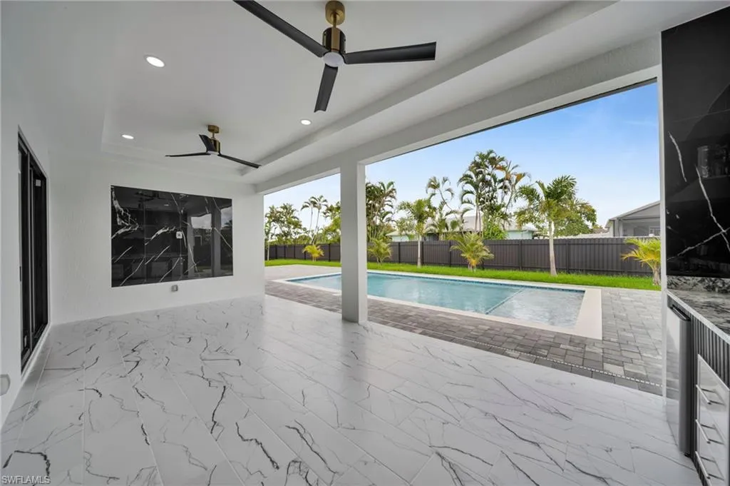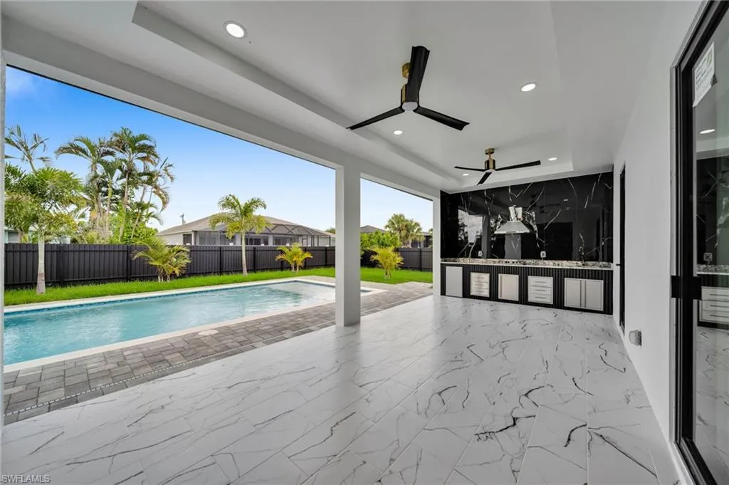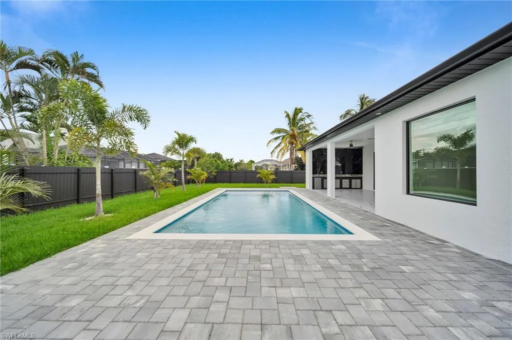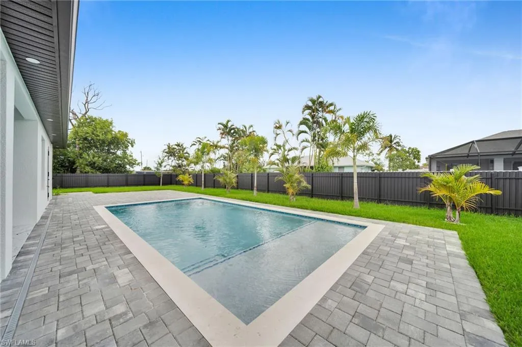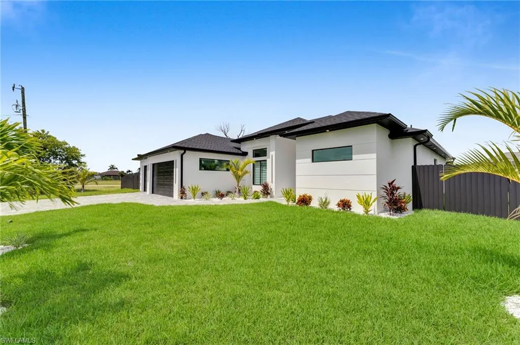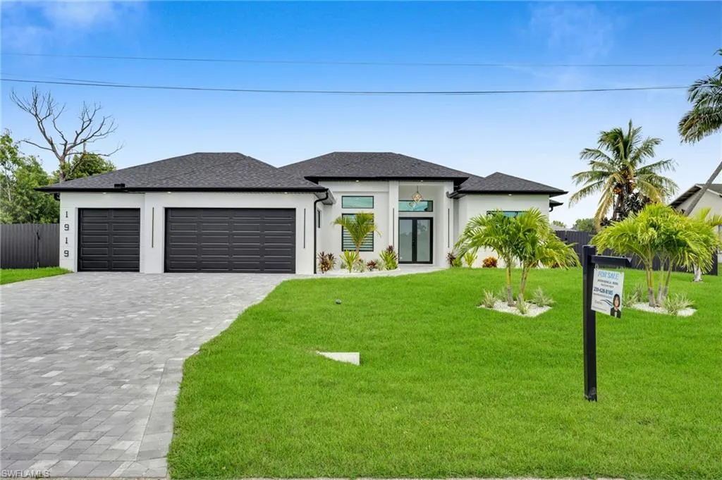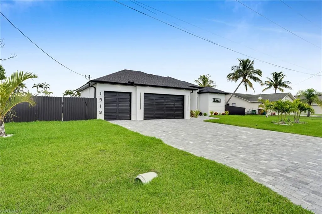 Enjoy a TRIPLE garage, a paved area to the left of the garage with a DOUBLE fence gate ideal for boats, trailers, or jet skis. Located in an amazing neighborhood, this home combines modern elegance, functionality, and prime Southwest Cape Coral living.