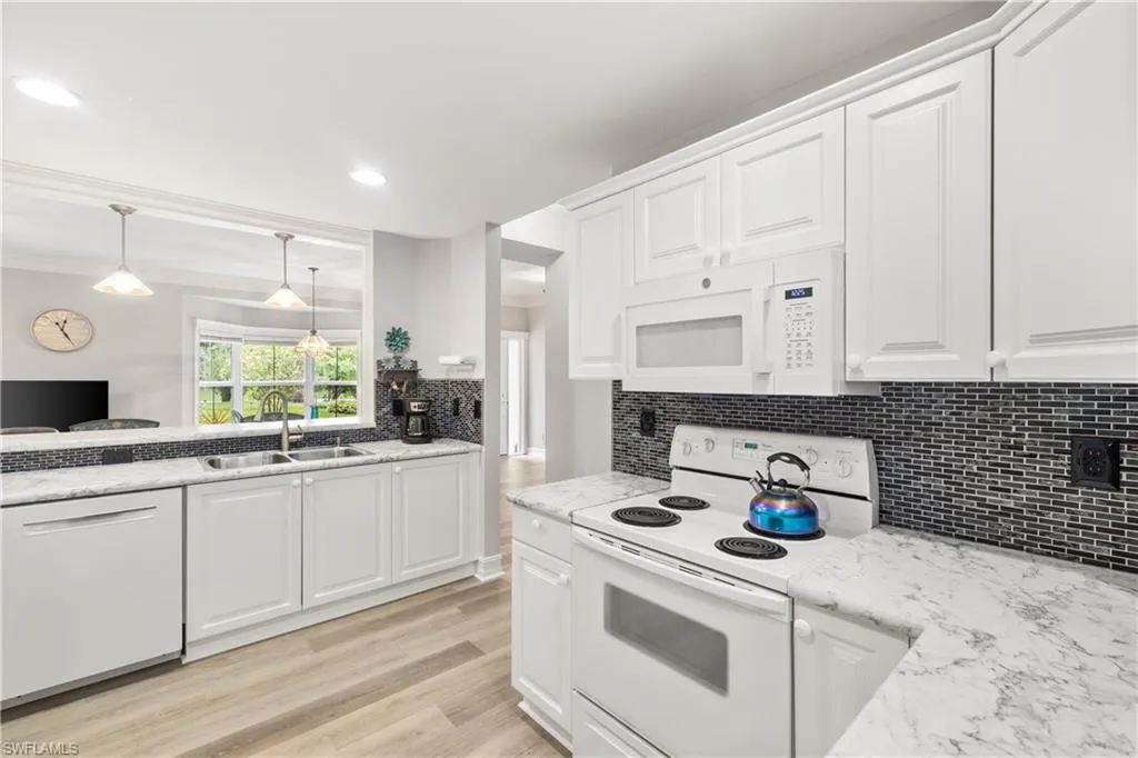 Rarely available first-floor corner unit! This light-filled condominium is ideally located in the gated community of Diamond Lakes, placing you minutes from Naples’ most desirable shopping, dining, entertainment, and our pristine sandy beaches. The condo has been tastefully renovated and is in immaculate, move-in-ready condition. Features include new flooring throughout, an upgraded kitchen with updated appliances, hurricane impact windows, and a new roof completed in 2023. The ideally designed floor plan capitalizes on the beautiful views of Diamond Lake and the lush landscaped surroundings. The oversized master suite offers a generous walk-in closet and direct access to the private lanai. Enjoy the scenery from your upgraded lanai, now enclosed with glass sliders to create a seamless extension of your living space. Furnishings are available for purchase, and these first floor end-units rarely become available. Schedule your private tour today!