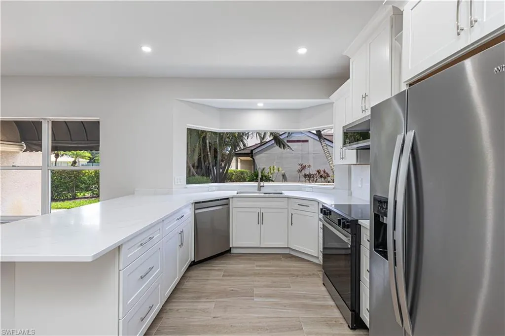 Completely updated Saint Andrews end unit can be yours. Nestled within the prestigious golf community of Quail Creek, this home offers a blend of comfort and convenience. This spacious villa has 2 generously sized bedrooms, 2 full bathrooms, 2 car garage plus golf cart garage. The master bedroom has sliding doors leading into the large screened in lanai area with great western views of the golf course. The second bedroom has high ceilings with quaint atrium patio. Exceptionally open floor plan with fireplace in the living room is light and bright. Quail Creek village has optional golf membership and social membership is included. The club has a great updated restaurant, pool side cabana bar and activities, which makes it a very social and active club that you and your family can enjoy all year around. Close to the beaches, A-rated schools, shopping, restaurants, and 1-75. Don’t miss this opportunity to own a piece of paradise in Naples.
