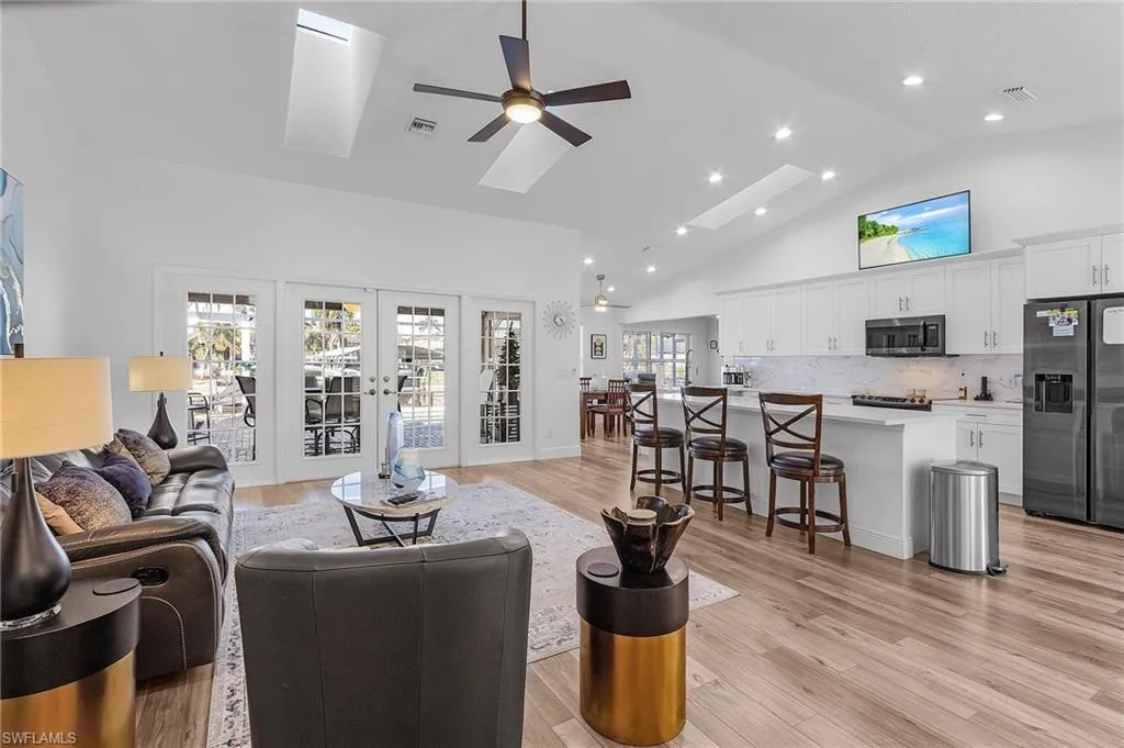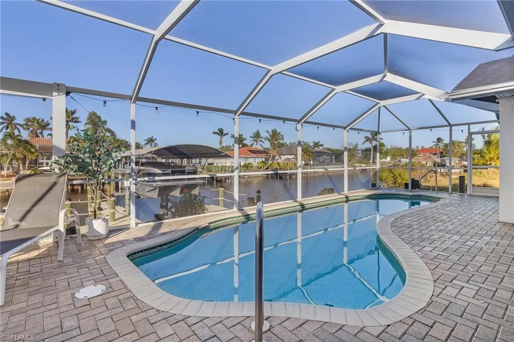 Nestled in one of Cape Coral’s most coveted enclaves, Four Mile Cove Southeast, this charming three-bedroom, three-bathroom pool home offers a rare combination of luxury, comfort, and gulf waterfront access. A standout feature is the private dock with a sturdy boat lift, providing effortless days on the water and easy for weekend explorations along the canals. The home’s exterior opens to a thoughtfully landscaped yard that leads to a sparkling pool, perfect for sun-drenched mornings or evening gatherings with friends and family. Inside, you’ll find beautiful updated touches throughout, from modern finishes in the living areas to a kitchen that blends style with practicality, making entertaining a breeze. Large windows and interior design choices bring in abundant natural light, creating an inviting atmosphere for both relaxing evenings and lively gatherings. The home is equipped with impact windows and doors, delivering enhanced safety and energy efficiency while preserving the home’s sleek look. A brand-new roof installed in 2024 adds peace of mind and longevity, a valuable upgrade in this coastal locale. Each of the three bedrooms is generously sized and complemented by well-appointed bathrooms, ensuring comfort and privacy for family and guests alike. The layout fosters seamless flow between indoor living spaces and the outdoor entertaining areas, making it easy to host waterfront barbecues, poolside drinks, or intimate dinners with a view of the canal. Beyond the property lines, the Four Mile Cove Southeast neighborhood offers a premier Cape Coral lifestyle with proximity to waterways, parks, and pedestrian-friendly paths, along with easy access to dining, shopping, and essential amenities. If you’re seeking a turnkey waterfront home in a top-tier location, this property delivers on every level—from the impact-rated conveniences to the convenient boat lift and dock, to the modern, updated aesthetic that makes this house feel like home the moment you walk through the door.