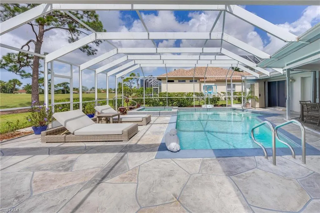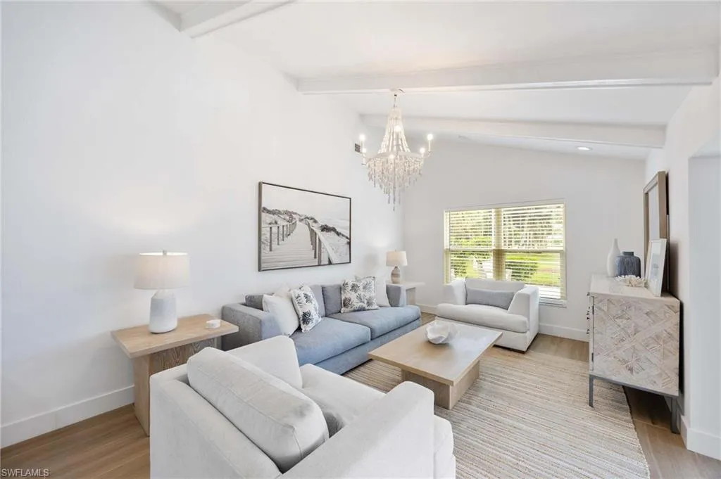 NO FLOOD INSURANCE REQUIRED** New Roof (2023), New A/C System (2023) & New Pool Heater (2023)** Experience the perfect blend of luxury, comfort, and convenience in this beautifully renovated ranch-style home. Featuring 3 spacious bedrooms, 2 updated bathrooms, and a 2-car garage, this residence is designed for effortless living and entertaining. Step inside to find hurricane-impact windows, porcelain wood-look tile flooring, and vaulted ceilings that create an open and inviting atmosphere. The chef’s island kitchen is the heart of the home, showcasing premium stainless-steel appliances, sleek cabinetry, and elegant finishes. Outside, your private retreat awaits—a spacious lanai with a heated saltwater pool and spa, all enjoying sunny southern exposure and panoramic golf course views. Whether relaxing or hosting guests, this outdoor oasis is truly exceptional. The home sits on an oversized lot with stunning sunset views and plenty of room for your own golf cart. Residents have the option to join the country club, which offers a 27-hole championship golf course, formal and casual dining, tennis and pickleball courts, a resort-style pool, and a state-of-the-art fitness center. The seller’s sports membership may be negotiable with the sale. Enjoy 24/7 security with a staffed main gate, two convenient secondary gates, and regular community patrols. Ideally located just three miles from the beach, close to fine dining, shopping, and the airport, this turnkey, fully furnished home is ready for you to move in and embrace the best of the Florida lifestyle. Don’t miss this rare opportunity to own a stunning, move-in-ready home with incredible views and every upgrade already in place!
