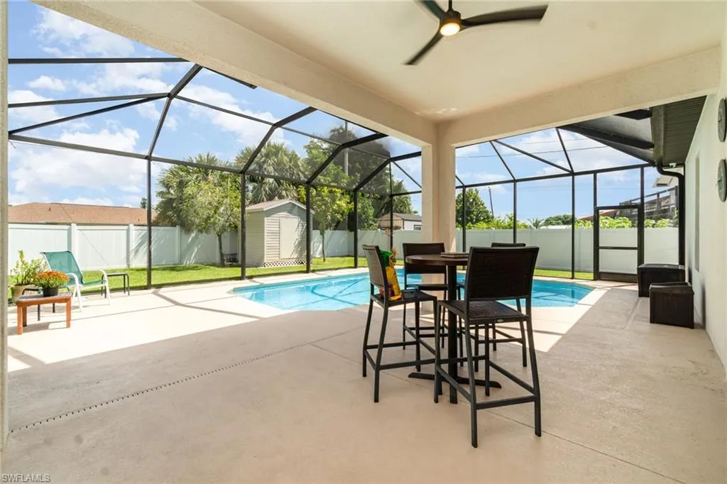 Additional highlights include a two-car garage, indoor laundry, and centrally located in Cape Coral.