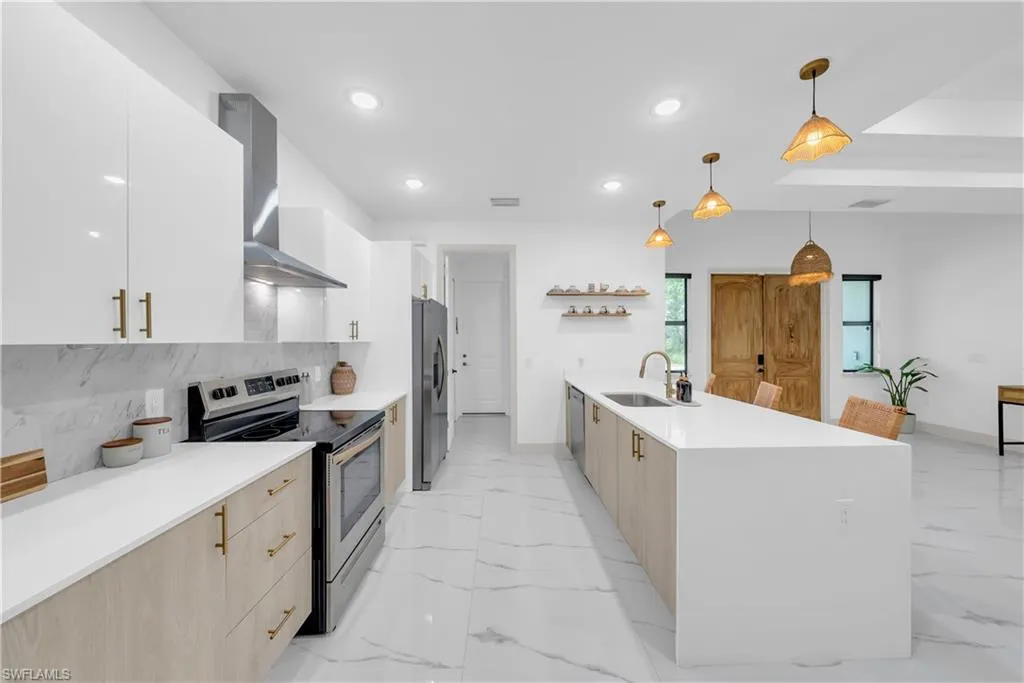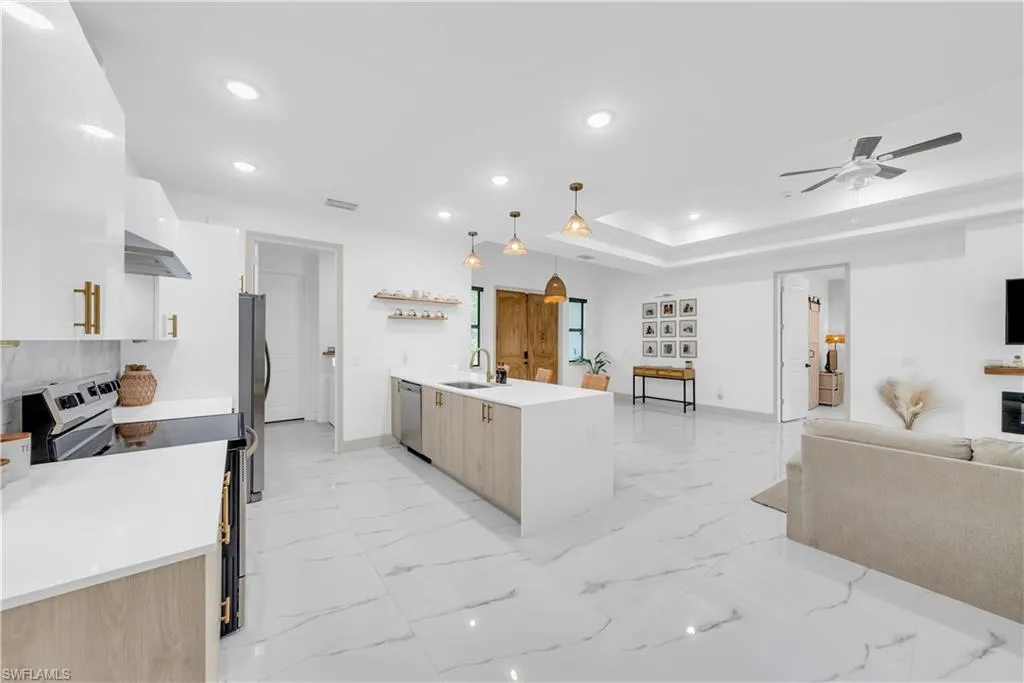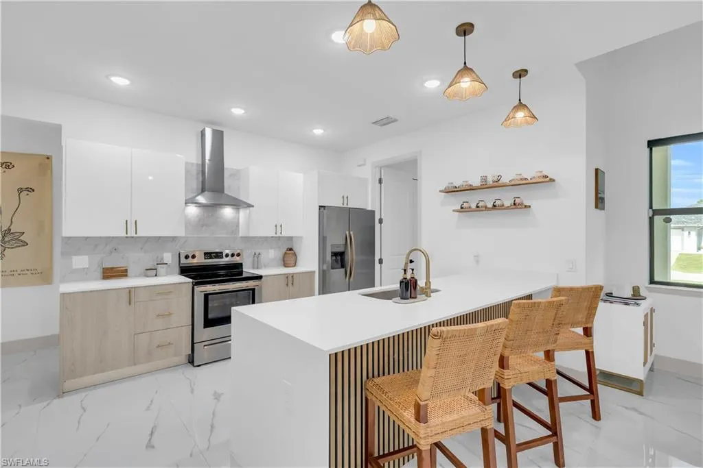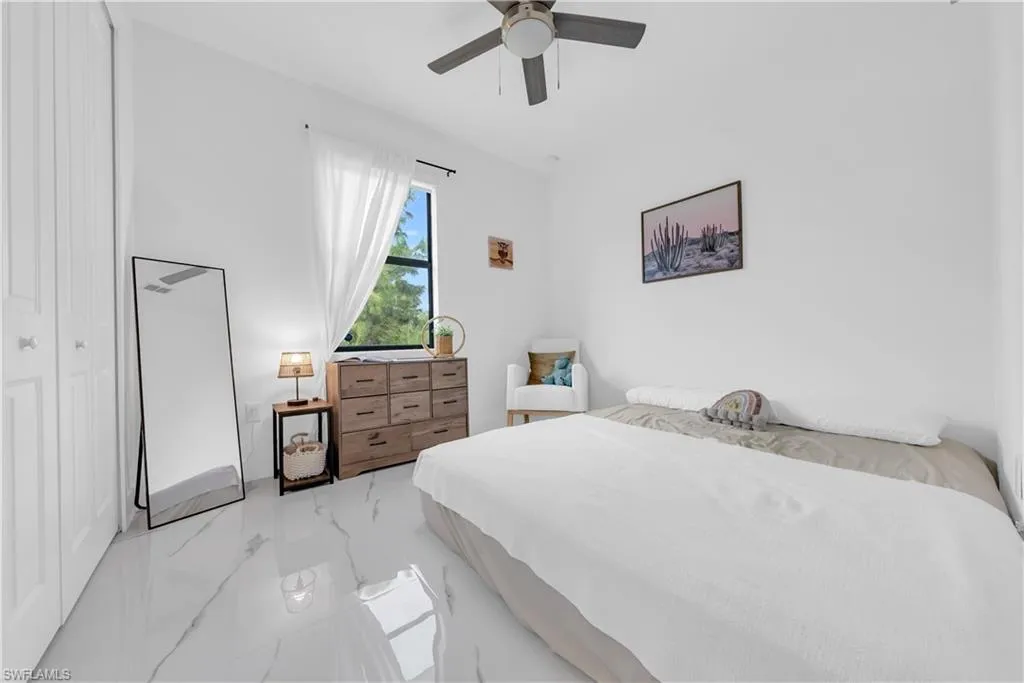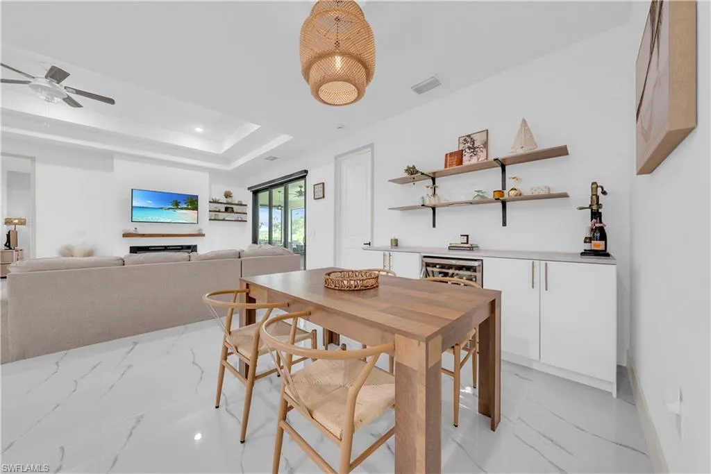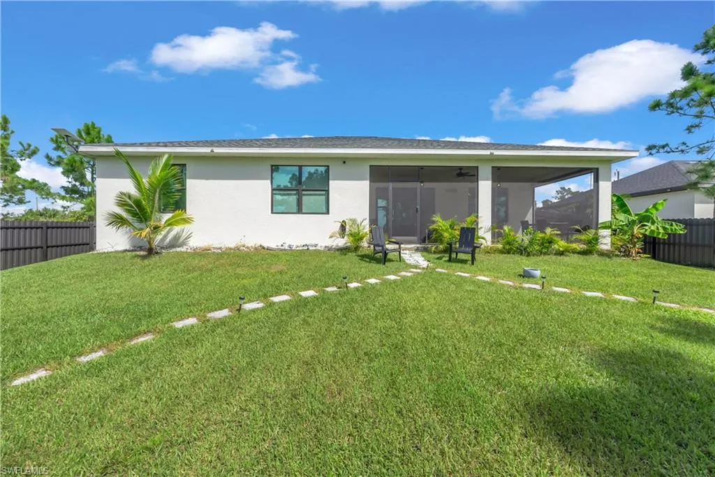 The open-concept layout flows seamlessly into a screened-in lanai, creating the perfect balance between indoor and outdoor living. The living area features an elegant electric fireplace, while the gourmet kitchen is complete with custom pantry shelves, a wine bar, and a wine fridge perfect for entertaining. Every room comes with built-in closets for added convenience, and the last guest room can include furniture if desired. The home also offers a fully fenced backyard with a cozy fire pit and a putting green for endless outdoor enjoyment. Additional features include Epoxy-finished garage floor, washer and dryer, ADT alarm system with sensors, Google Home doorbell and side cameras fully installed, and both Xfinity Internet and Starlink connections pre-wired—offering buyers flexibility and convenience from day one. Located just minutes from Lee Boulevard, this home offers easy access to shopping, dining, and everything Lehigh Acres has to offer. Experience the perfect blend of modern luxury and everyday comfort in this move-in-ready home.