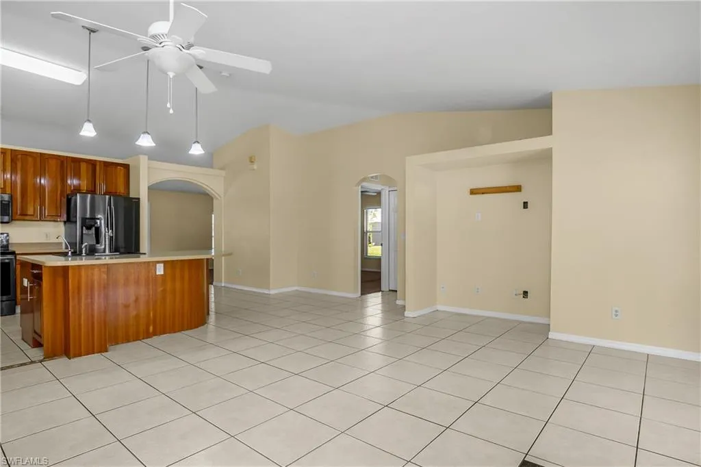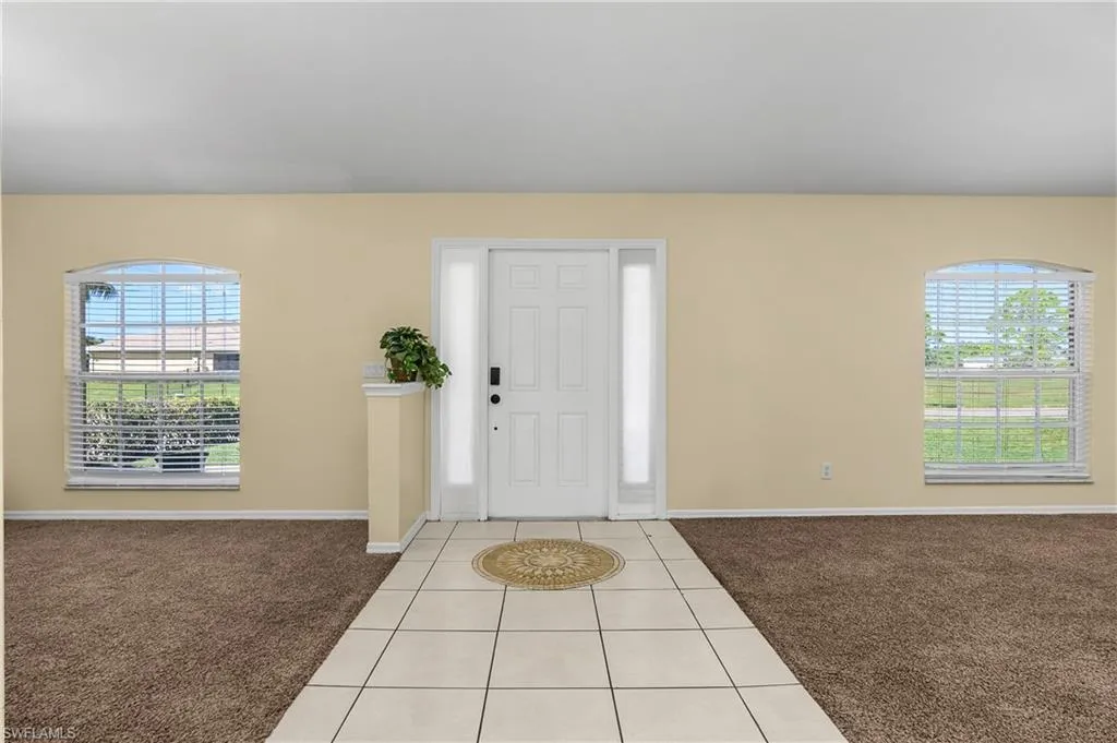 Discover this elegant 3-bedroom, 2-bathroom, solar-powered home in Cape Coral, Florida. Spanning over 1,900 sqft., this residence features a cozy fireplace, vaulted ceilings, mature landscaping, and a screened in lanai, offering privacy and comfort. Upgrades include a 2020 roof, solar panels in 2022, Multi-Zone HVAC, and water heater. Plus a 2-car garage and an oversized driveway. Each room has an individual thermostat for efficiency and comfort. Enjoy local amenities that include a public boat ramp, kayak launch, fishing pier, golf course, pickleball/tennis courts, playgrounds, dog parks, nature trails, grocery stores, shopping, fitness centers, resorts, and dining. Nearby attractions include the Crystal Lake Resort, Cape Coral Yacht Club, Four Mile Cove Ecological Preserve, Sun Splash Waterpark, and vibrant downtown Cape Coral. SOLAR PANELS ARE 100% PAID off. NO HOA. NO CDD. NO FLOOD ZONE