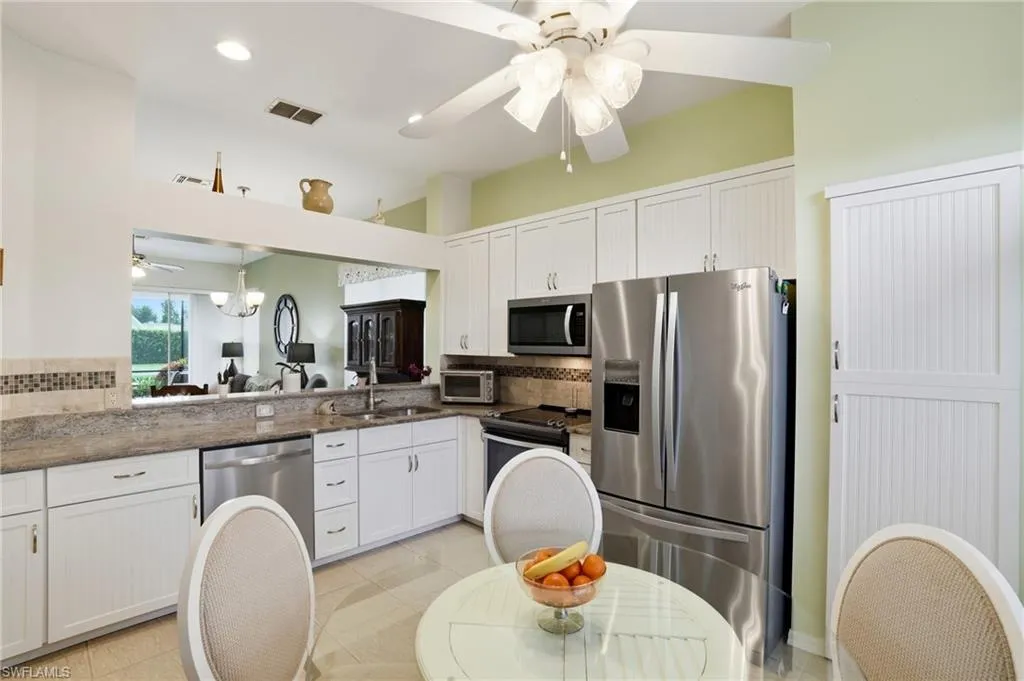 Turnkey waterfront villa in Devonshire Lakes at Gateway! This move-in ready home offers a new roof (2022), new HVAC system, and new water heater (<1 yr). Interior features plantation shutters, tile entry, and an extended screened lanai with a newer lanai cage overlooking tranquil lake views. The updated kitchen boasts stainless steel appliances (convection oven & microwave), granite counters, refaced shaker cabinets, pantry, and newer disposal. Additional upgrades include a newer washer and an impact-resistant window in the primary bedroom. Conveniently located near RSW, JetBlue Park, shopping, and dining—sold turnkey for effortless Florida living!