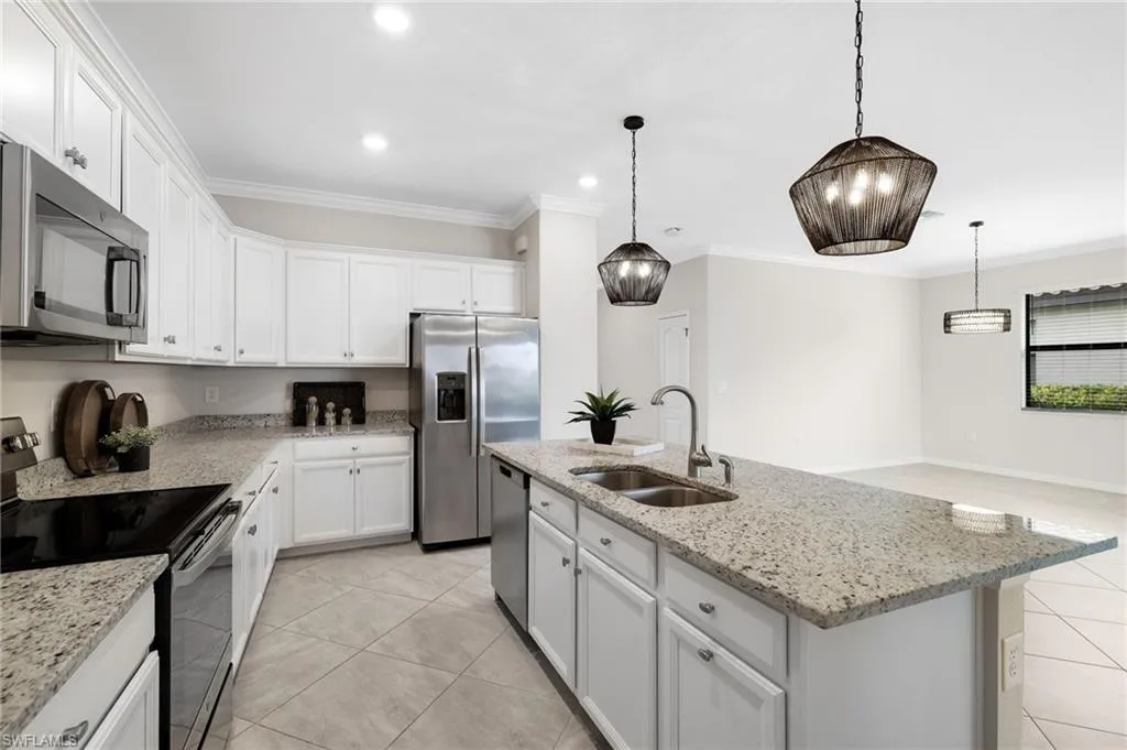 QUICK CLOSE! BE IN YOUR NEW HOME BY THE HOLIDAYS! Experience an unparalleled opportunity in the prestigious community of The Place at Corkscrew. This beautifully designed home offers 2,032 square feet of thoughtfully planned living space, blending comfort, style, and functionality—ideal as a full-time residence, seasonal retreat, or investment property. Featuring 4 BEDROOMS and 3 FULL BATHROOMS, this residence showcases a NEUTRAL COLOR SCHEME and an OPEN CONCEPT LAYOUT, perfect for both lively gatherings and peaceful evenings at home. The kitchen is a true centerpiece, boasting GRANITE COUNTERTOPS, STAINLESS STEEL APPLIANCES, custom lighting, white shaker cabinetry, walk-in pantry, and a generously sized center island ideal for entertaining. The living area flows seamlessly to a screened lanai with tranquil preserve views and NORTHWEST REAR EXPOSURE, the perfect setting to enjoy Southwest Florida’s breathtaking sunsets. The split floor plan is designed for privacy and convenience. The primary suite offers a serene retreat with a spacious, light-filled bedroom, TWO WALK-IN CLOSETS, and a spa-inspired en-suite bath with a comfort-height dual vanity, private water closet, and expansive walk-in shower. A secondary ensuite bedroom provides privacy for guests, while two additional bedrooms an full bathroom at the front of the home add flexibility for family, a home office, or hobbies. Additional features include tile flooring throughout, CROWN MOLDING, window blinds in every room, ceiling fans, and a GLASS-INSERT FRONT DOOR that adds a touch of elegance. The home also includes smart technology with a coded front door lock, thermostat, and Ring doorbell for added convenience and security. A two-car garage with EPOXY FLOORING completes this residence with both style and function.