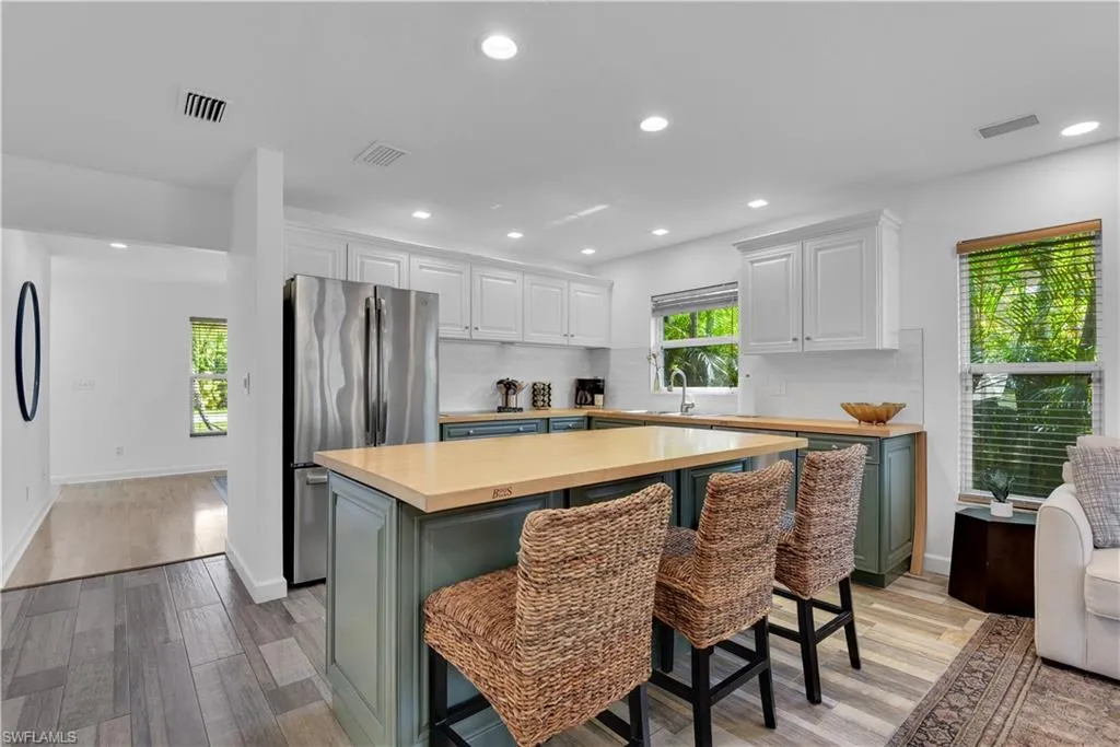 BIG PRICE REDUCTION!! Welcome to your completely updated 3-bedroom, 2-bathroom home, located just minutes from Vanderbilt Beach! NO FLOOD ZONE! NO HOA FEES! BRAND NEW ROOF, HVAC AND WATER HEATER! As you walk through the front door, you’ll enter a bright and airy family room that flows seamlessly into the open great room, which includes the living room, dining room, and kitchen. The beach-inspired coastal kitchen features white, and seafoam cabinets paired with wood countertops. Stainless steel appliances and a convenient breakfast bar complete this inviting space. The master bedroom includes an ensuite bathroom for added privacy, while the two additional bedrooms and a shared bathroom are located on the opposite side of the home, perfect for family or guests. Enjoy the spacious lanai and fenced backyard, making this home ideal for families and pets. The one-car garage and long driveway provide ample parking space for up to three vehicles. This centrally located home is within walking distance to several world-renowned popular restaurants, shops, and beautiful first-class beaches, making it an ideal base to explore Naples. This home can be a great winter home for a snowbird or an ideal cash cow for an investor.