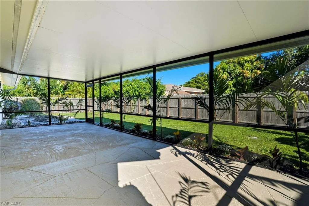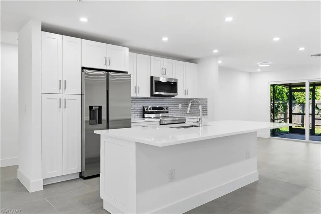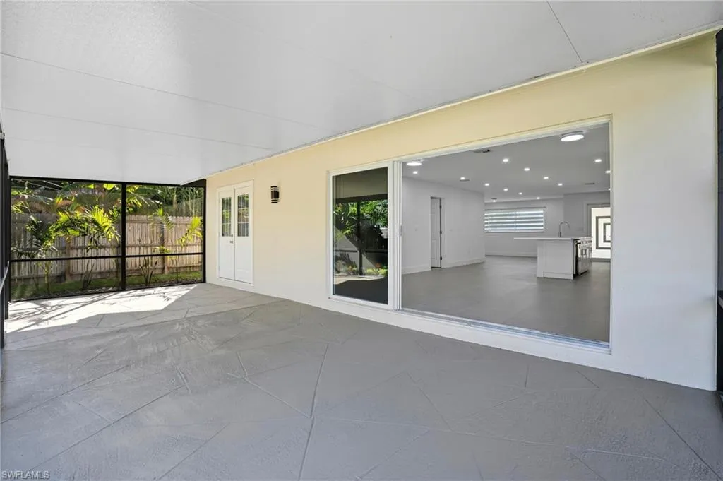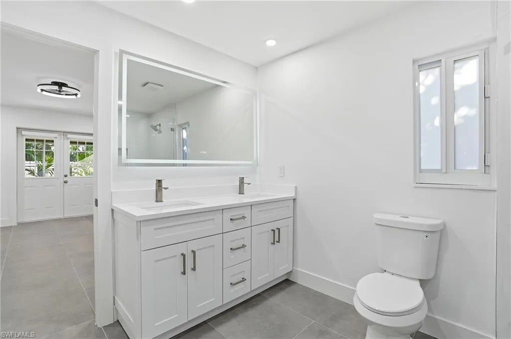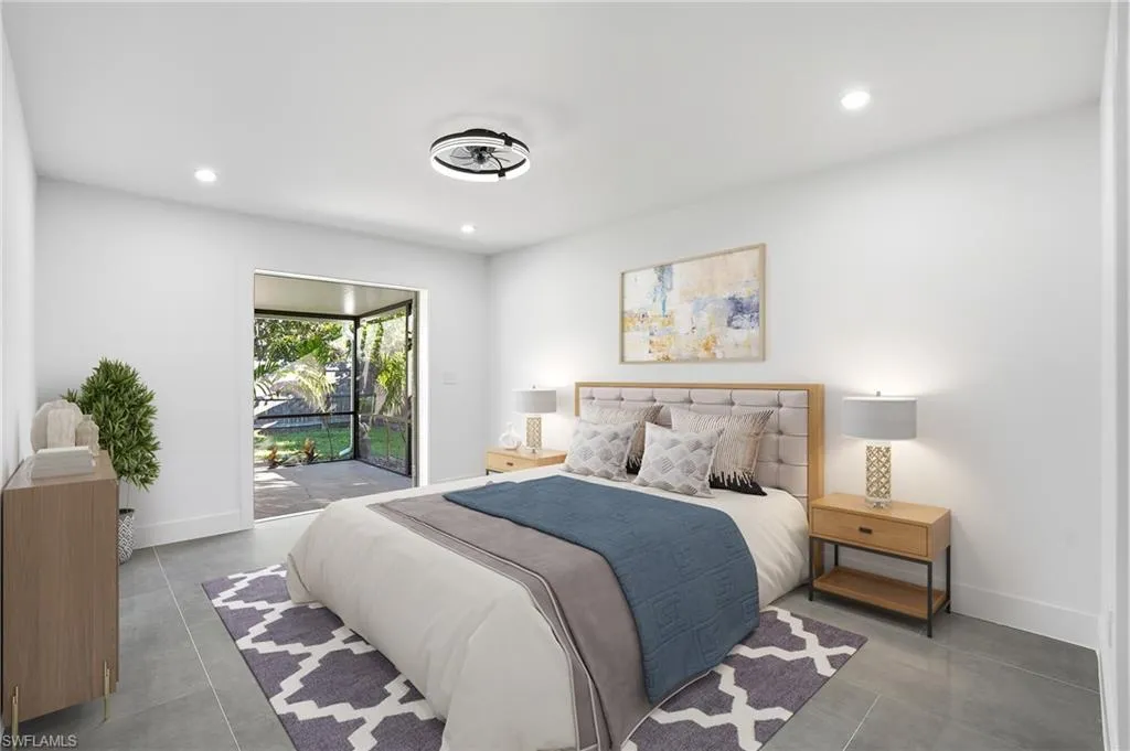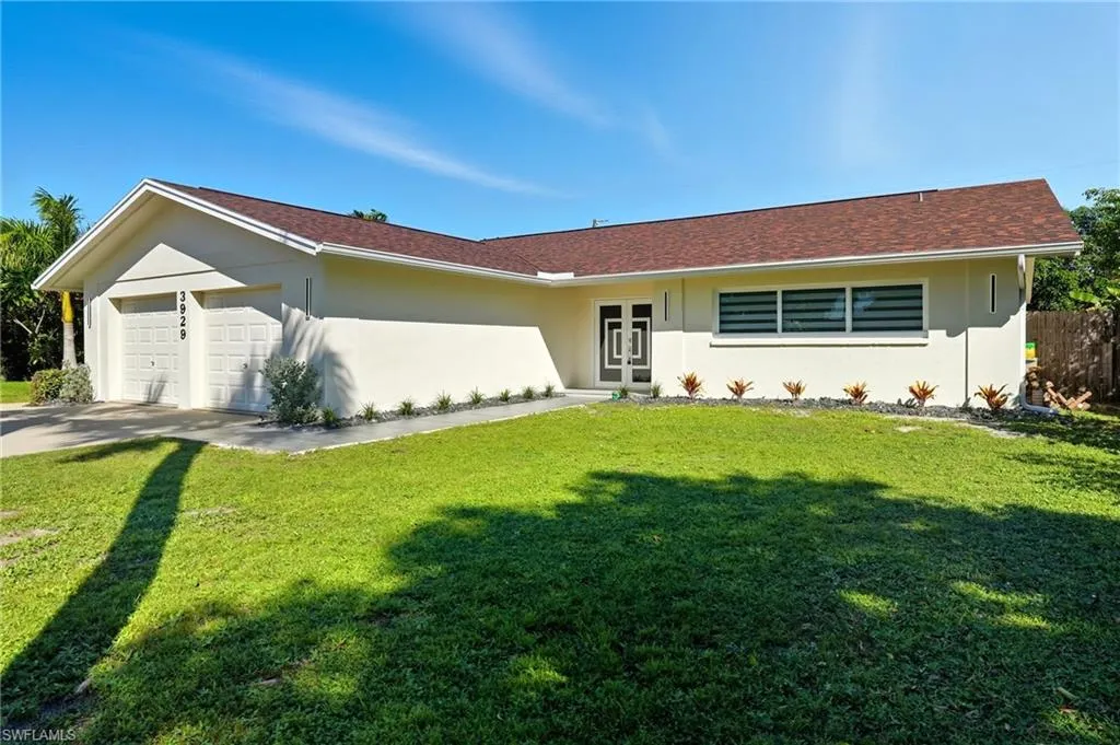 This stunning, fully remodeled residence has been transformed from the studs up into a sleek, modern sanctuary that blends high-end finishes with thoughtful functionality. You have no worries with this home and no work that needs to be done. As part of the 2025 remodel, 304 square feet was added to the interior, expanding the living space, and the lanai was enlarged to enhance outdoor enjoyment. Every major system was replaced so that you have total peace of mind. This includes a powerful new 200-amp electric panel with all-new wiring, brand-new plumbing, two state-of-the-art A/C units with pristine new ductwork, as well as new impact-rated windows and doors throughout the entire home. The freshly re-shingled 2023 roof and 2017 water heater add to the home’s lasting appeal. Inside, expansive oversized 24” X 48” tile flooring stretches across every room, creating a seamless, sophisticated flow. Ambient wafer lighting with adjustable color temperature and contemporary ceiling fans enhance comfort and style throughout. The gourmet kitchen is a showstopper, featuring soft-close white cabinetry, gleaming white quartz countertops, premium stainless-steel appliances, and a dramatic 9-foot island perfect for entertaining. Every living space in the home has been intentionally crafted with versatility in mind. Take the den, for instance—it features a generous layout and a full closet, making it an ideal candidate for a fourth bedroom, complete with space for a bed and nightstands. The great room boasts built-in speakers for immersive sound, while every bedroom and living space includes elevated, TV-ready outlets with reinforced backing for effortless customization. French doors in the master suite lead to a covered screened lanai where you can enjoy your morning cup of coffee. The master spa-inspired bathroom offers two closets, dual sinks, and a fog-free LED backlit touch mirror for a polished daily routine. The crown jewel of this property is the private, fully equipped mother-in-law suite—complete with its own entrance, stylish kitchenette, cozy living area, full bath, spacious bedroom, and dedicated A/C unit—ideal for guests, extended family, or rental income estimated at $2,000/mo with utilities included. By residing in the main home, you may be eligible for a 5% down payment—plus, you can apply rental income to help offset your monthly mortgage. And when you are ready to explore the neighborhood-Sugden Park is a scenic 0.6-mile walk with a 60-acre lake, freshwater beach, paddle boats, trails, and picnic areas. The USOP National Pickleball Center is 1.6 miles away with 65 lighted courts, a pro shop, clinics, and leagues. Naples Botanical Garden is a short 1.4 miles, presenting beautiful tropical gardens and lily ponds. Downtown 5th Avenue is 3.7 miles away, offering dining, shopping, and nightlife. The stunning Naples Beach is only 5 miles away. This home and location have it all!
