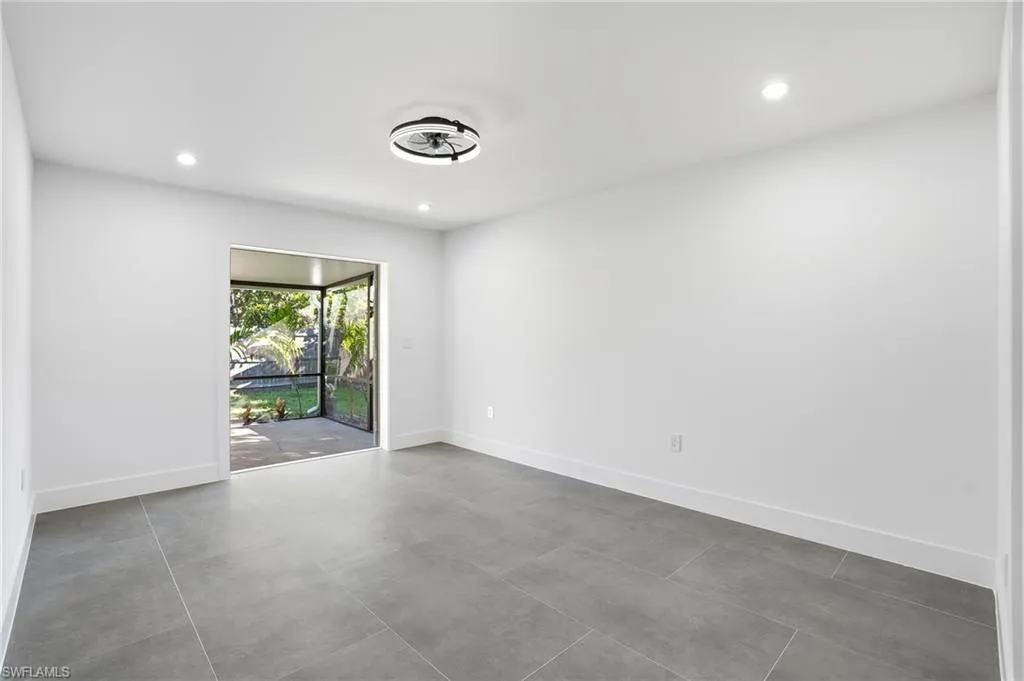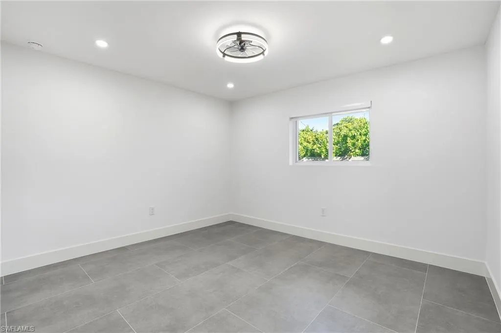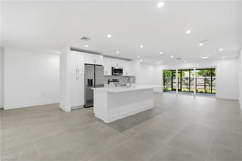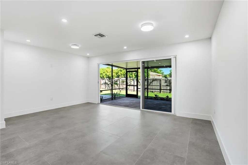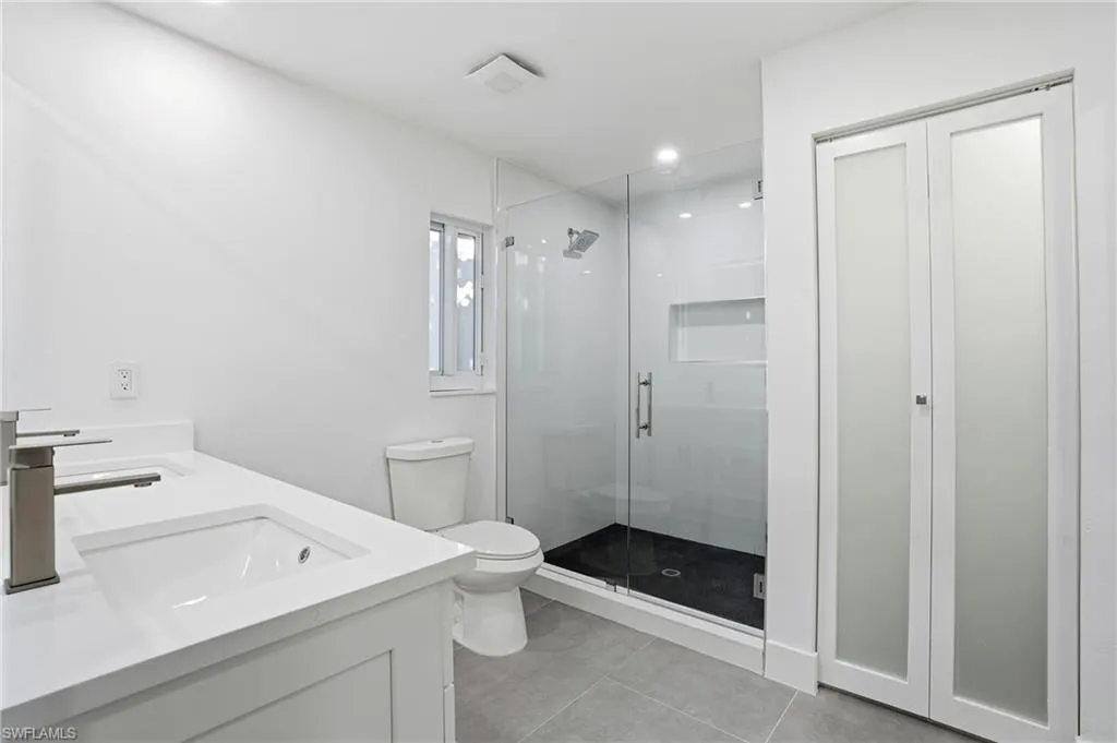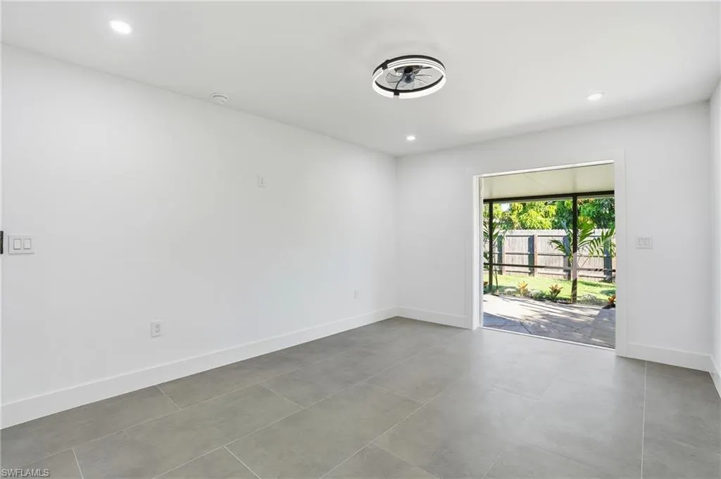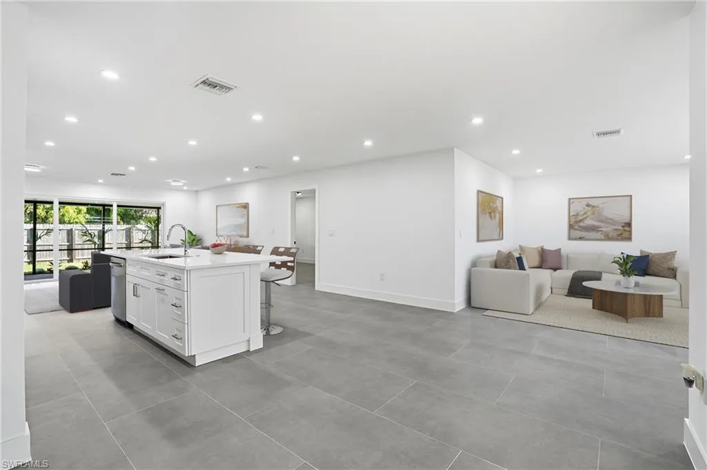 This stunning, fully remodeled residence has been transformed from the studs up into a sleek, modern sanctuary that blends high-end finishes with thoughtful functionality. You have no worries with this home and no work that needs to be done. As part of the 2025 remodel, 304 square feet was added to the interior, expanding the living space, and the lanai was enlarged to enhance outdoor enjoyment. Every major system was replaced so that you have total peace of mind. This includes a powerful new 200-amp electric panel with all-new wiring, brand-new plumbing, two state-of-the-art A/C units with pristine new ductwork, as well as new impact-rated windows and doors throughout the entire home. The freshly re-shingled 2023 roof and 2017 water heater add to the home’s lasting appeal. Inside, expansive oversized 24” X 48” tile flooring stretches across every room, creating a seamless, sophisticated flow. Ambient wafer lighting with adjustable color temperature and contemporary ceiling fans enhance comfort and style throughout. The gourmet kitchen is a showstopper, featuring soft-close white cabinetry, gleaming white quartz countertops, premium stainless-steel appliances, and a dramatic 9-foot island perfect for entertaining. Every living space in the home has been intentionally crafted with versatility in mind. Take the den, for instance—it features a generous layout and a full closet, making it an ideal candidate for a fourth bedroom, complete with space for a bed and nightstands. The great room boasts built-in speakers for immersive sound, while every bedroom and living space includes elevated, TV-ready outlets with reinforced backing for effortless customization. French doors in the master suite lead to a covered screened lanai where you can enjoy your morning cup of coffee. The master spa-inspired bathroom offers two closets, dual sinks, and a fog-free LED backlit touch mirror for a polished daily routine. The crown jewel of this property is the private, fully equipped mother-in-law suite—complete with its own entrance, stylish kitchenette, cozy living area, full bath, spacious bedroom, and dedicated A/C unit—ideal for guests, extended family, or rental income estimated at $2,000/mo with utilities included. By residing in the main home, you may be eligible for a 5% down payment—plus, you can apply rental income to help offset your monthly mortgage. And when you are ready to explore the neighborhood-Sugden Park is a scenic 0.6-mile walk with a 60-acre lake, freshwater beach, paddle boats, trails, and picnic areas. The USOP National Pickleball Center is 1.6 miles away with 65 lighted courts, a pro shop, clinics, and leagues. Naples Botanical Garden is a short 1.4 miles, presenting beautiful tropical gardens and lily ponds. Downtown 5th Avenue is 3.7 miles away, offering dining, shopping, and nightlife. The stunning Naples Beach is only 5 miles away. This home and location have it all!