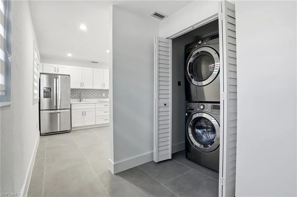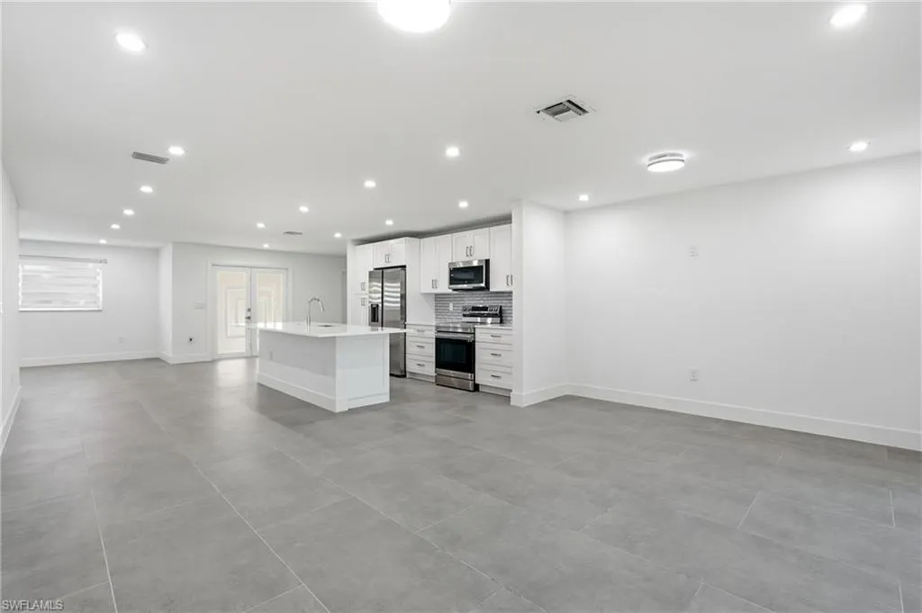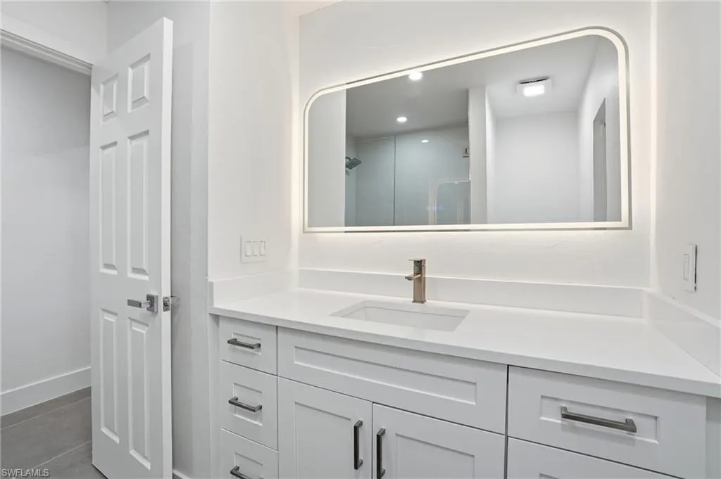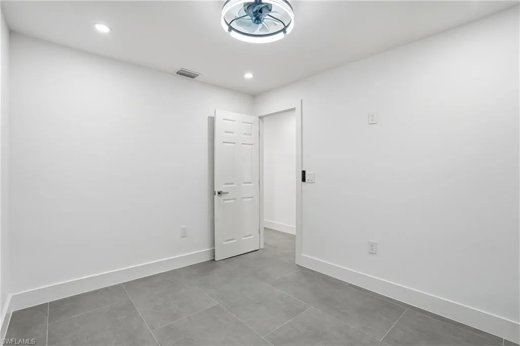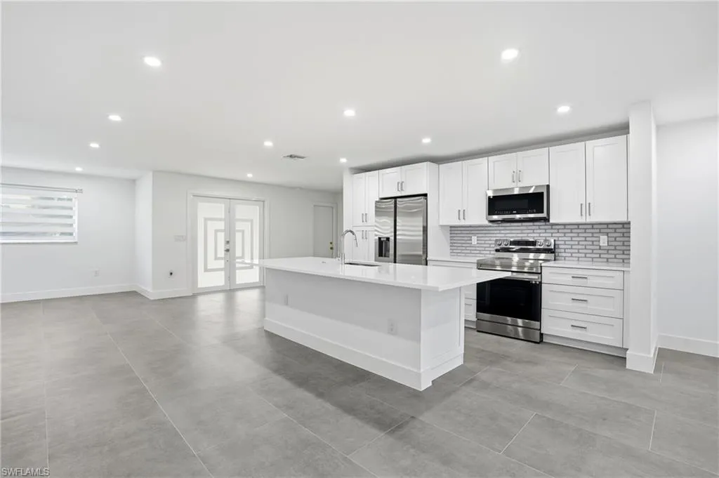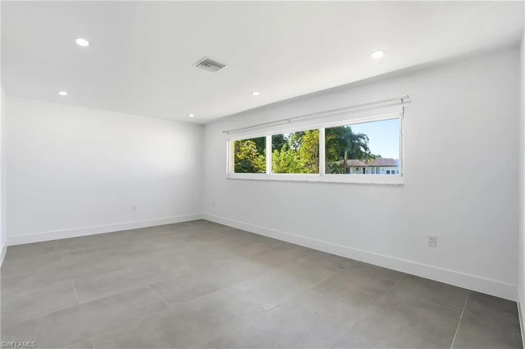This stunning, fully remodeled residence has been transformed from the studs up into a sleek, modern sanctuary that blends high-end finishes with thoughtful functionality. You have no worries with this home and no work that needs to be done. As part of the 2025 remodel, 304 square feet was added to the interior, expanding the living space, and the lanai was enlarged to enhance outdoor enjoyment. Every major system was replaced so that you have total peace of mind. This includes a powerful new 200-amp electric panel with all-new wiring, brand-new plumbing, two state-of-the-art A/C units with pristine new ductwork, as well as new impact-rated windows and doors throughout the entire home. The freshly re-shingled 2023 roof and 2017 water heater add to the home’s lasting appeal. Inside, expansive oversized 24” X 48” tile flooring stretches across every room, creating a seamless, sophisticated flow. Ambient wafer lighting with adjustable color temperature and contemporary ceiling fans enhance comfort and style throughout. The gourmet kitchen is a showstopper, featuring soft-close white cabinetry, gleaming white quartz countertops, premium stainless-steel appliances, and a dramatic 9-foot island perfect for entertaining. Every living space in the home has been intentionally crafted with versatility in mind. Take the den, for instance—it features a generous layout and a full closet, making it an ideal candidate for a fourth bedroom, complete with space for a bed and nightstands. The great room boasts built-in speakers for immersive sound, while every bedroom and living space includes elevated, TV-ready outlets with reinforced backing for effortless customization. French doors in the master suite lead to a covered screened lanai where you can enjoy your morning cup of coffee. The master spa-inspired bathroom offers two closets, dual sinks, and a fog-free LED backlit touch mirror for a polished daily routine. The crown jewel of this property is the private, fully equipped mother-in-law suite—complete with its own entrance, stylish kitchenette, cozy living area, full bath, spacious bedroom, and dedicated A/C unit—ideal for guests, extended family, or rental income estimated at $2,000/mo with utilities included. By residing in the main home, you may be eligible for a 5% down payment—plus, you can apply rental income to help offset your monthly mortgage. And when you are ready to explore the neighborhood-Sugden Park is a scenic 0.6-mile walk with a 60-acre lake, freshwater beach, paddle boats, trails, and picnic areas. The USOP National Pickleball Center is 1.6 miles away with 65 lighted courts, a pro shop, clinics, and leagues. Naples Botanical Garden is a short 1.4 miles, presenting beautiful tropical gardens and lily ponds. Downtown 5th Avenue is 3.7 miles away, offering dining, shopping, and nightlife. The stunning Naples Beach is only 5 miles away. This home and location have it all!